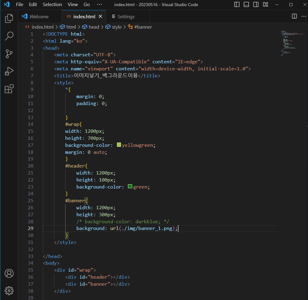 이미지 넣을 부분에 주석처리 해주어 이미지를 대체한다.