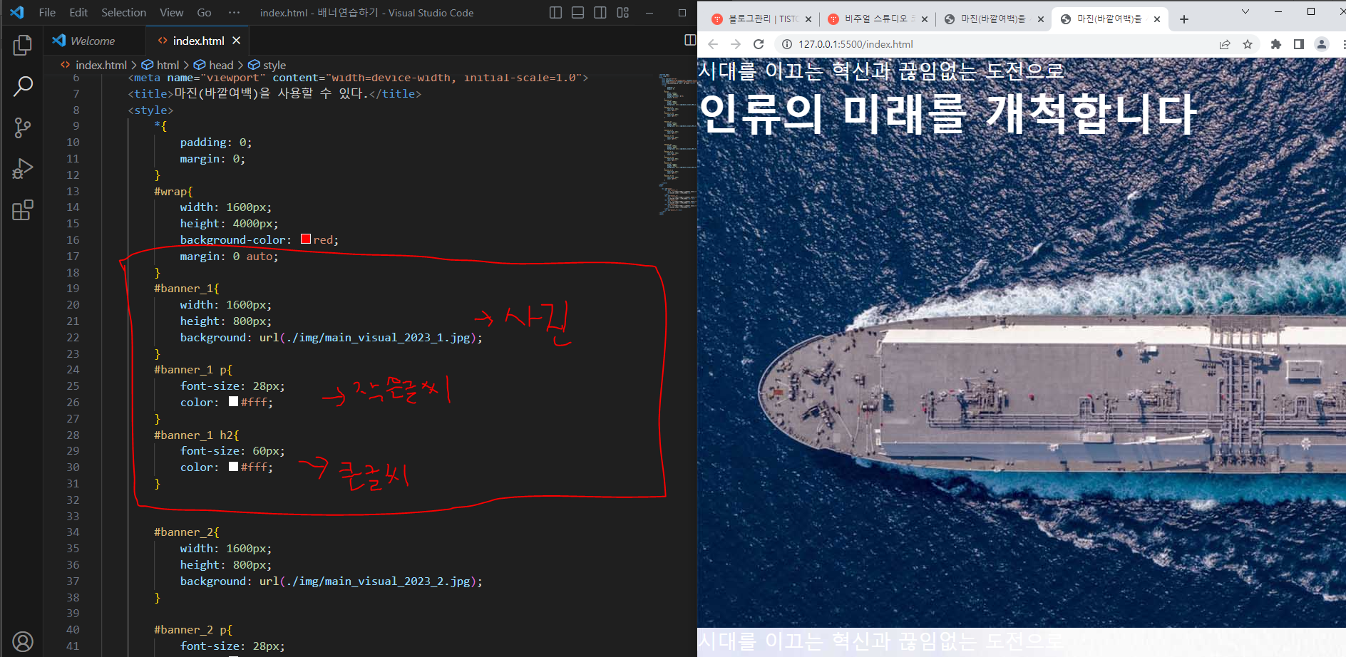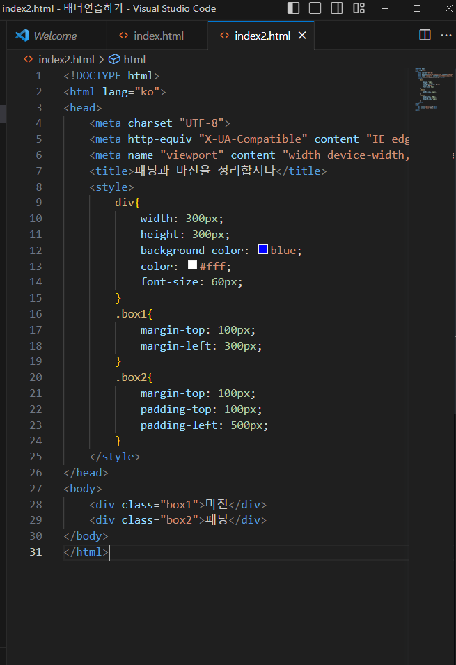 - margin: 바깥여백, 컬러값을 넣으면 박스의 여백이 늘어남