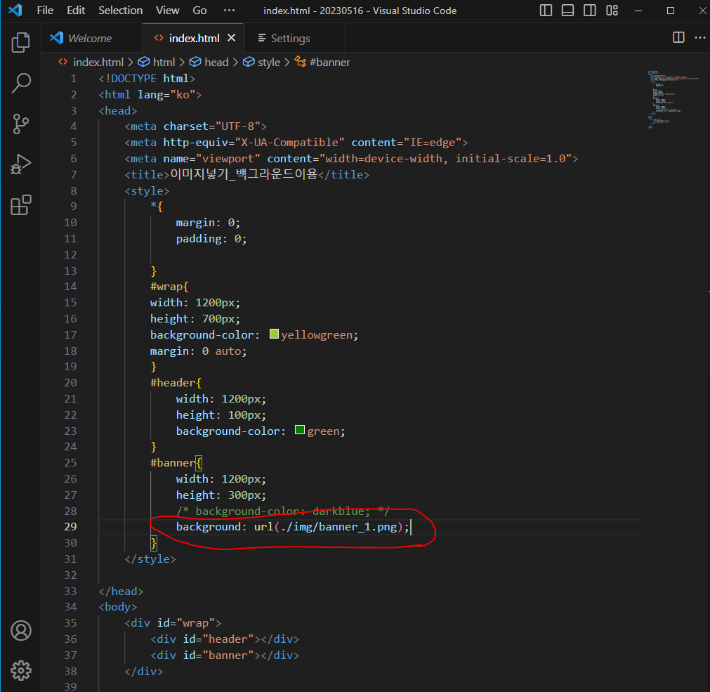 이미지 넣을 부분에 주석처리 해주어 이미지를 대체한다.