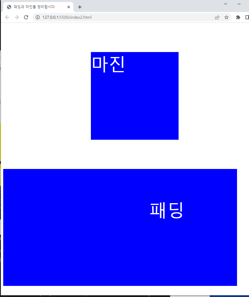 패딩: 패딩은 움직인 값만큼 포함하여 표시해줌