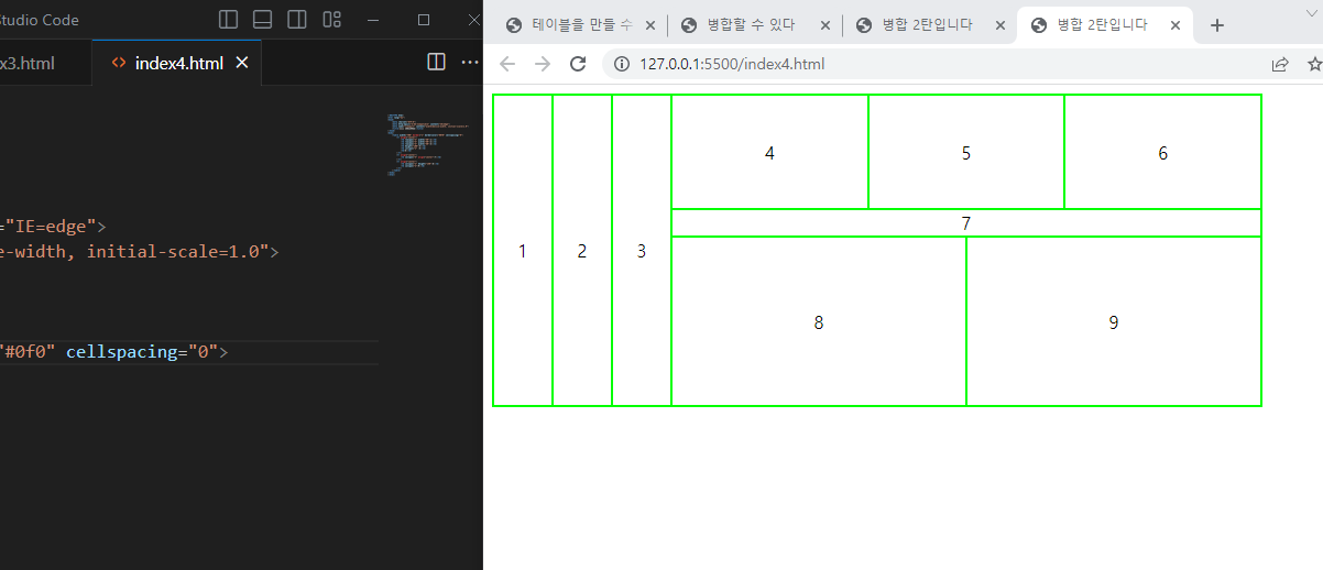 cellspaceing="0": 테두리 두줄로 되어있는 걸 한줄로 합쳐줌