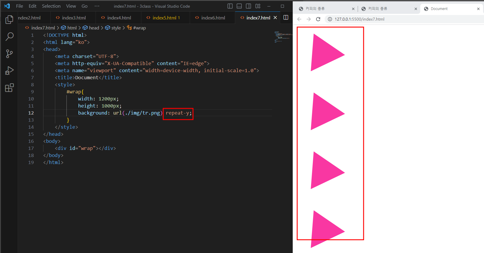 반복을 중지하고 싶다면 끝에 no repeat; 을 적어줌