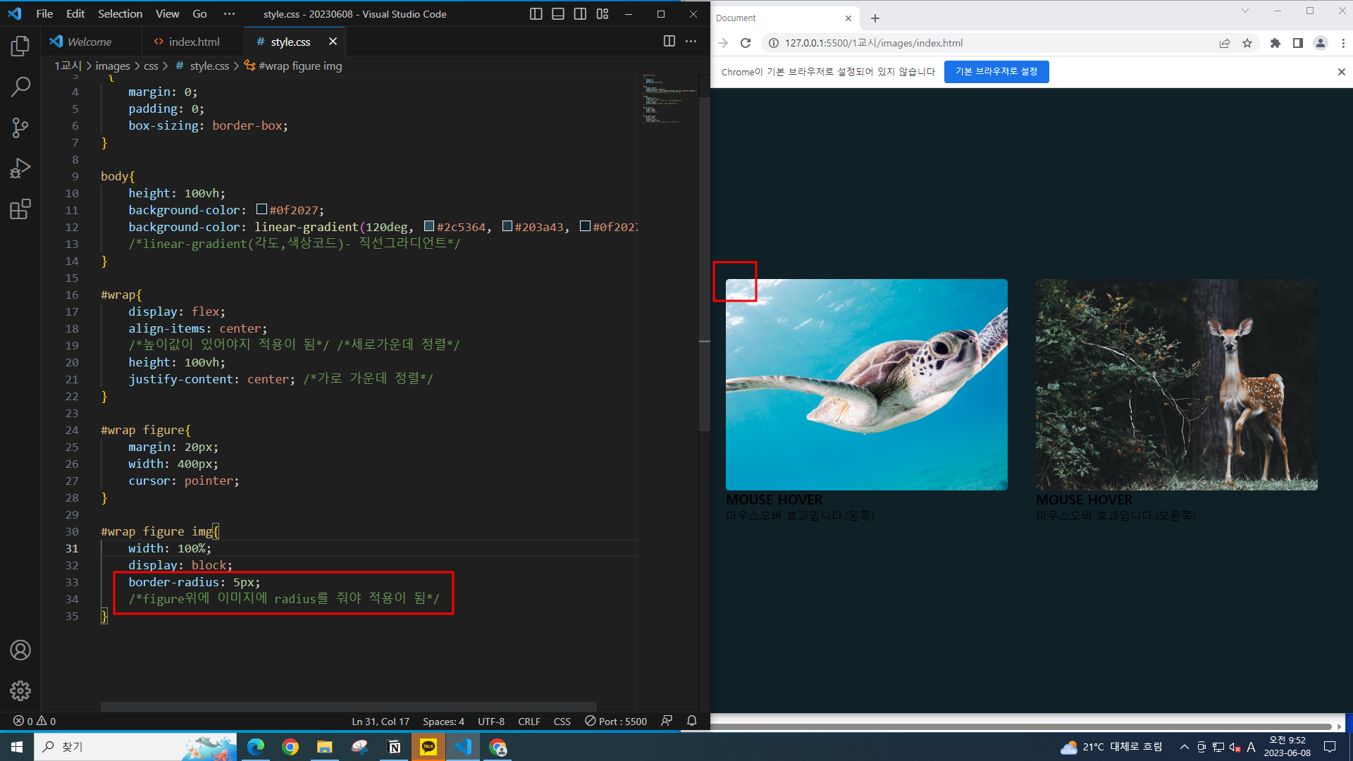 border-radius: __px 는 이미지위에 피규어가 있기 때문에 이미지에 명령을 줘야함