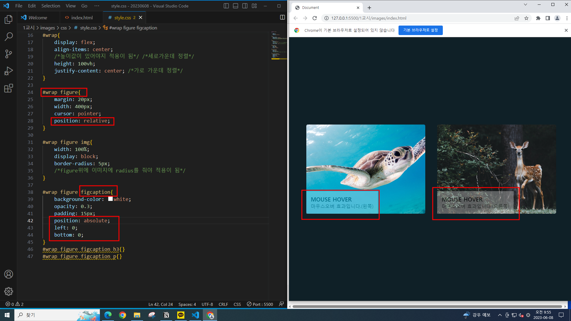 figcaption이 움직이려면 부모(figure)가 기준점(relative)이 되어야함
