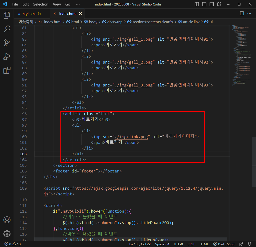 | 비주얼 스튜디오 코드18_ 연꽃축제 예제_header 사이드 (1) | 2023.06.08 |