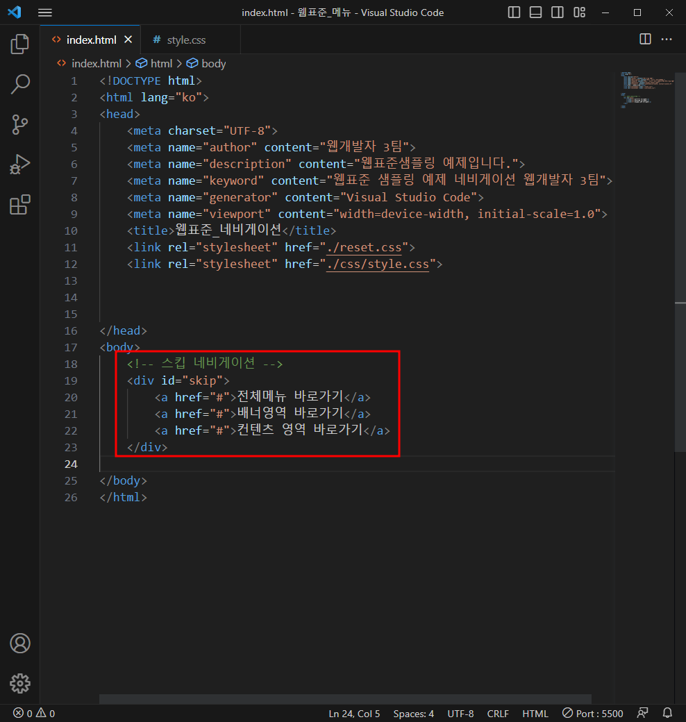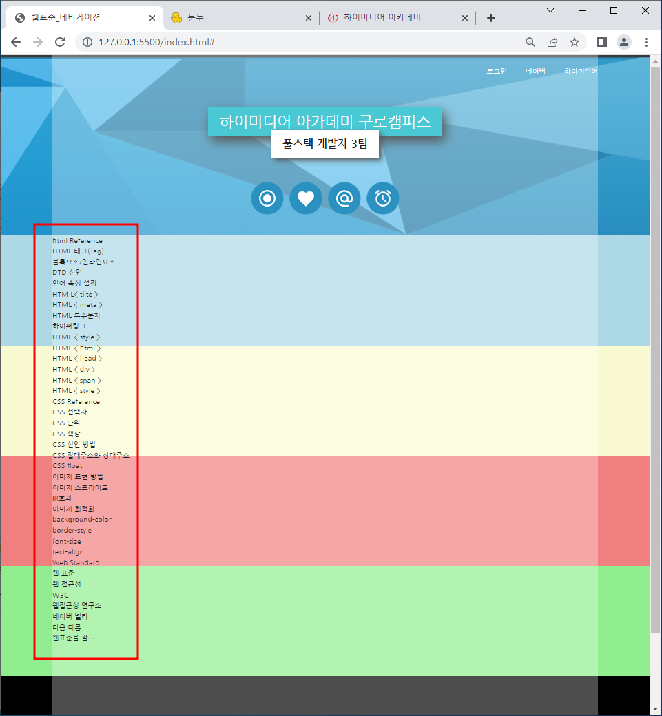 <meta name="keyword" content="웹표준 샘플링 예제 네비게이션 웹개발자 3팀">