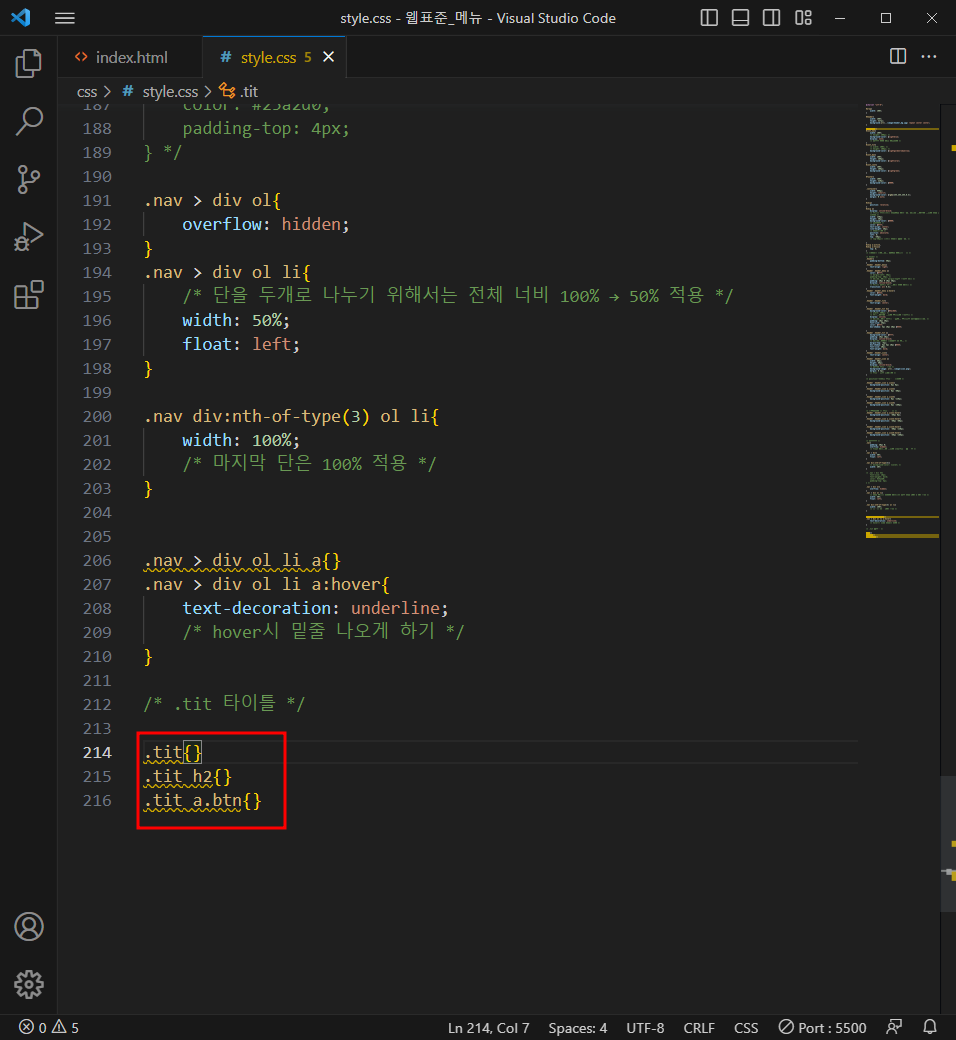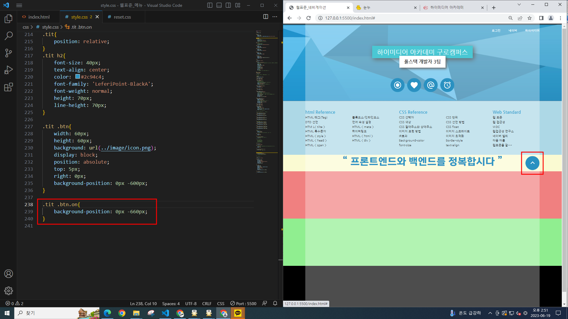 ●.tit .btn.on{ background-position}: 위쪽 방향 이미지 넣어주기