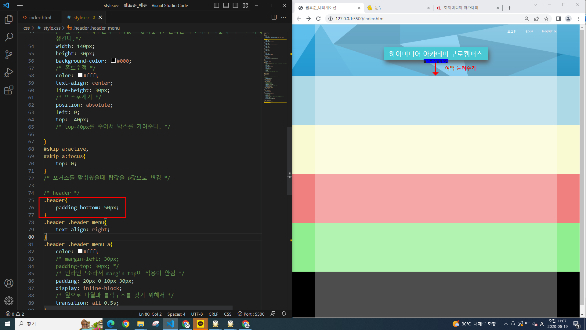| 비주얼 스튜디오 코드 36_ 웹표준) header (0) | 2023.06.16 |