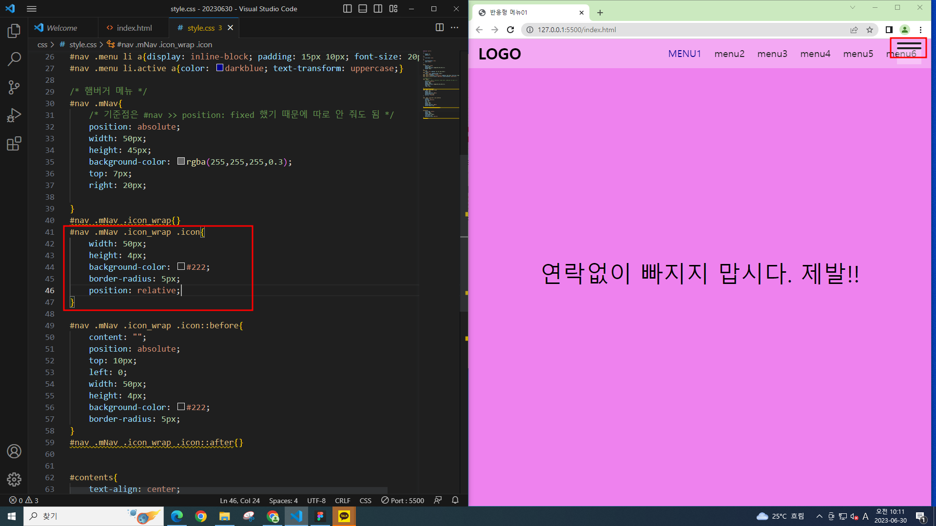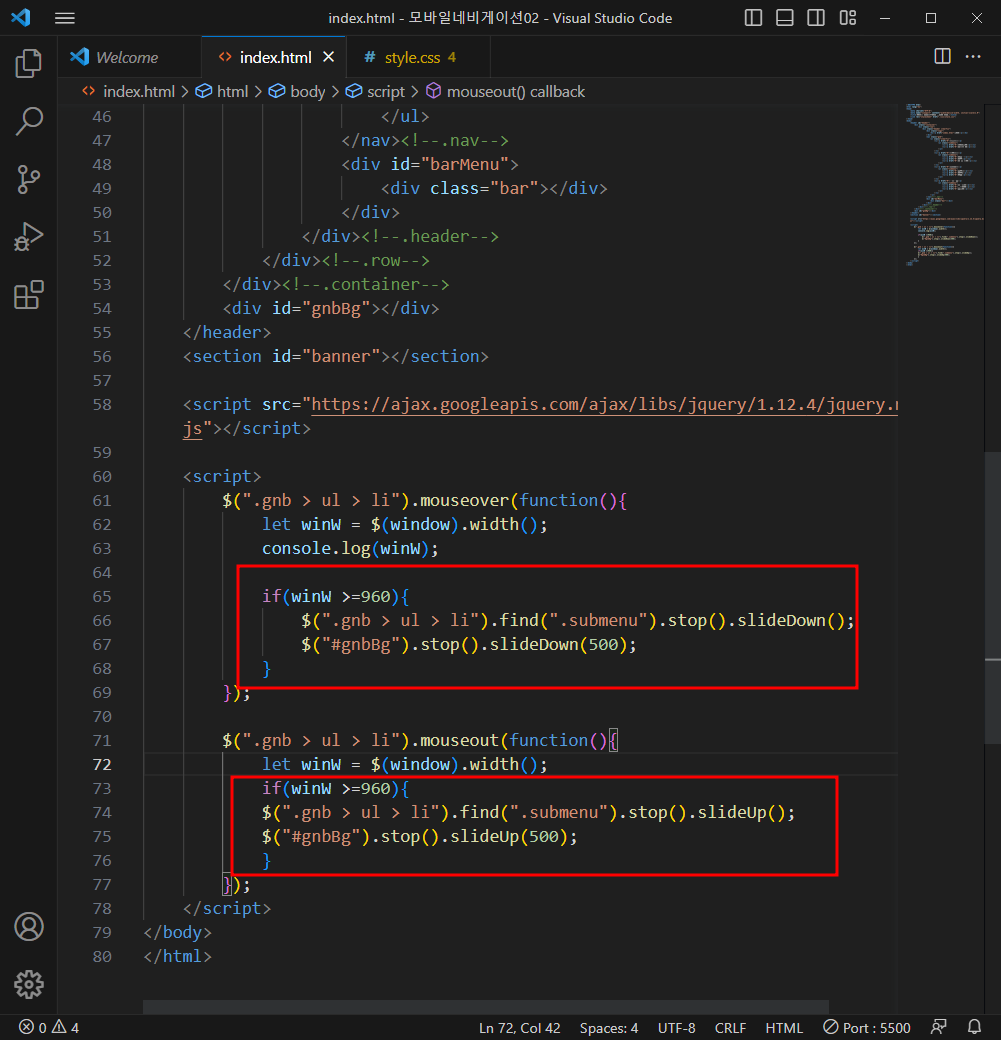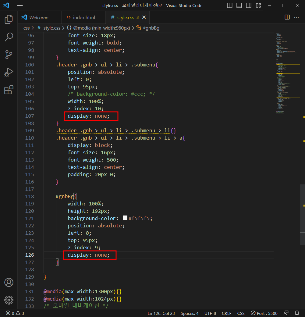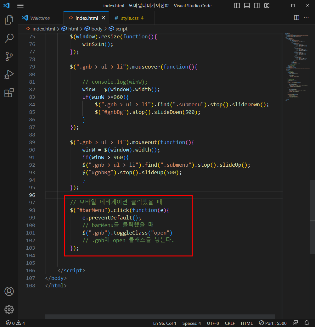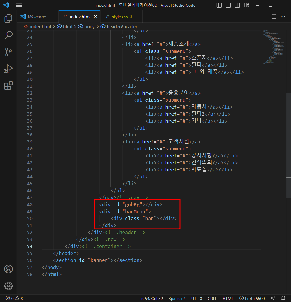 비주얼 스튜디오 코드 56_ 반응형 메뉴(모바일 네비게이션)
