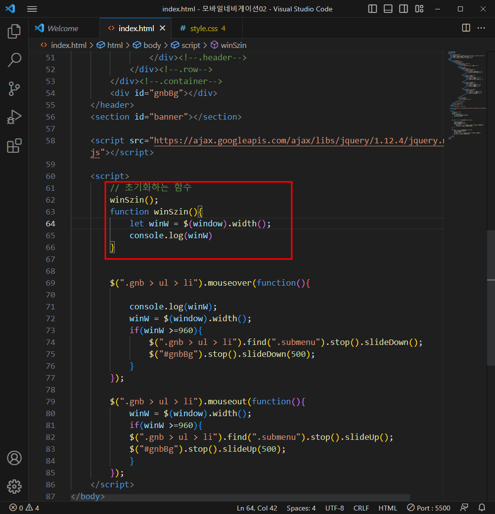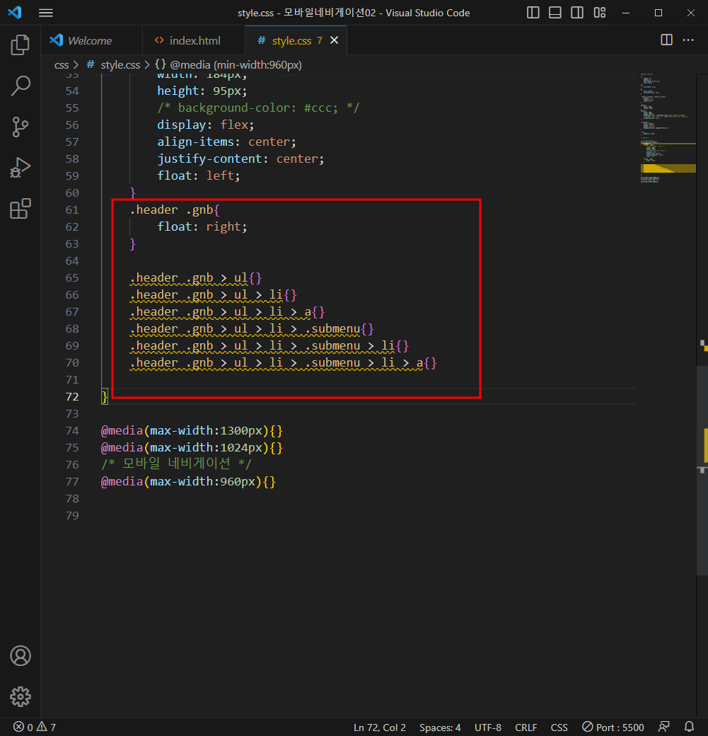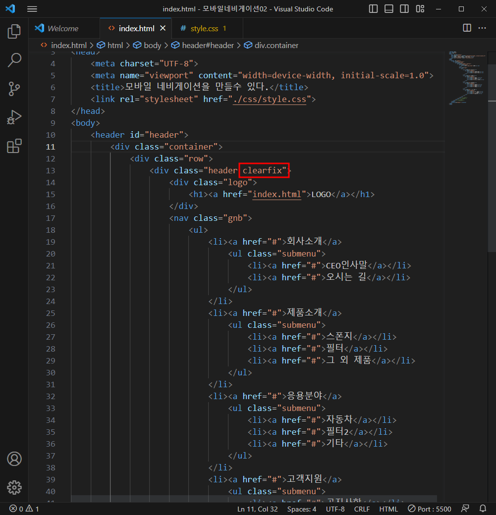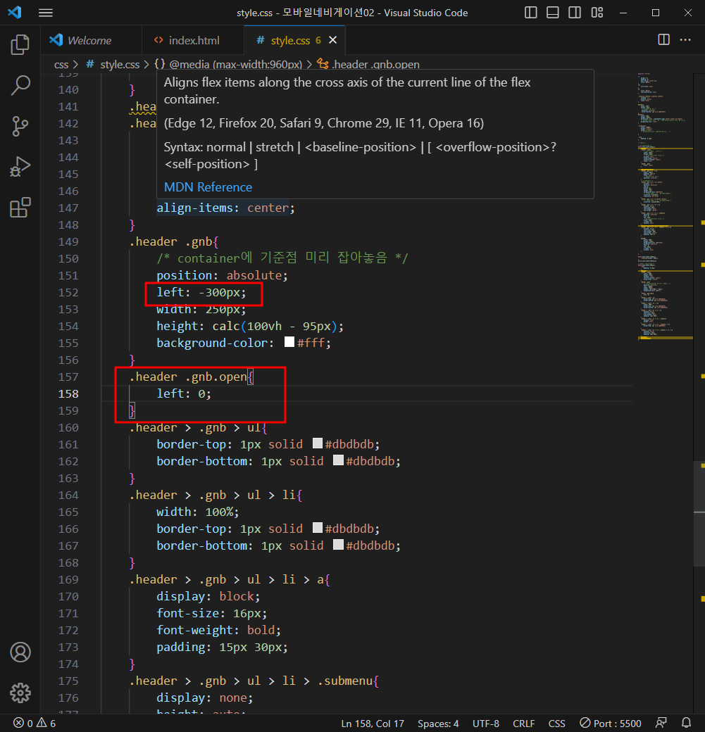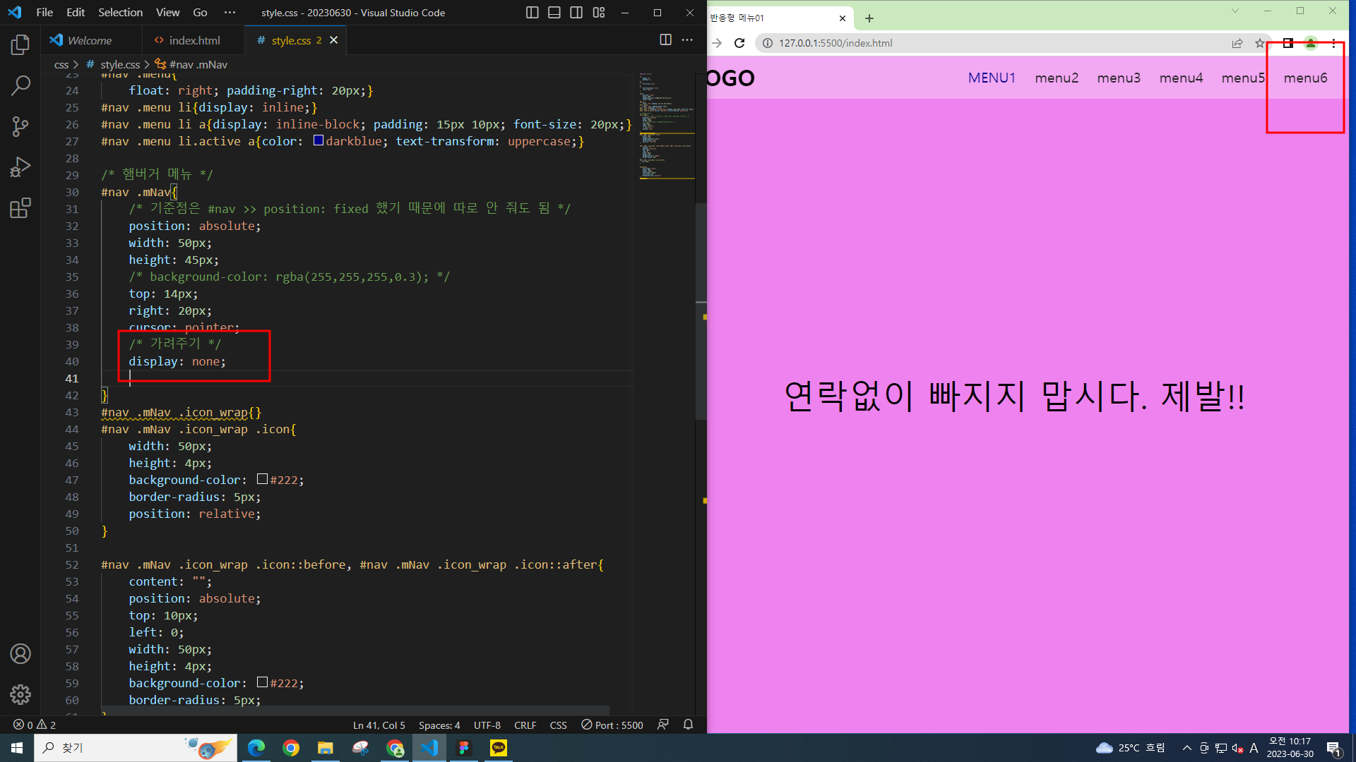 비주얼 스튜디오 코드 56_ 반응형 메뉴(모바일 네비게이션)