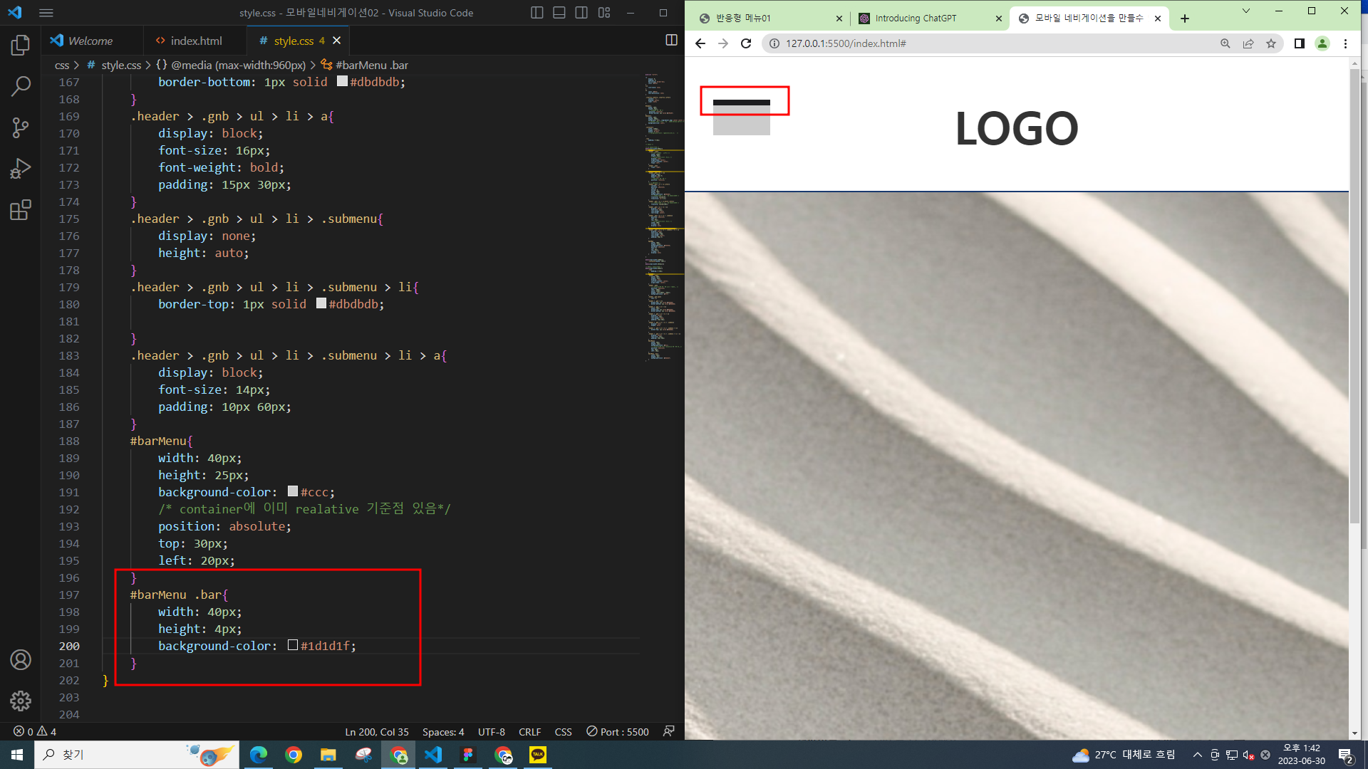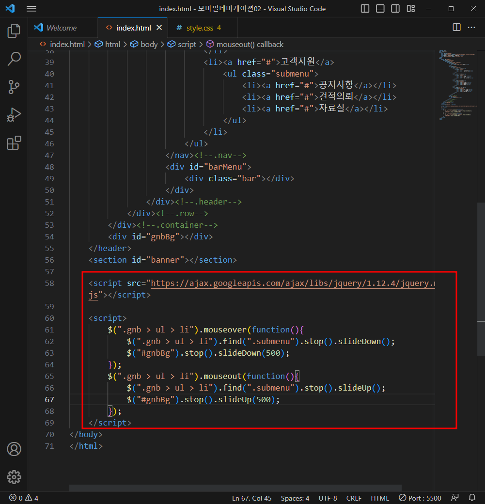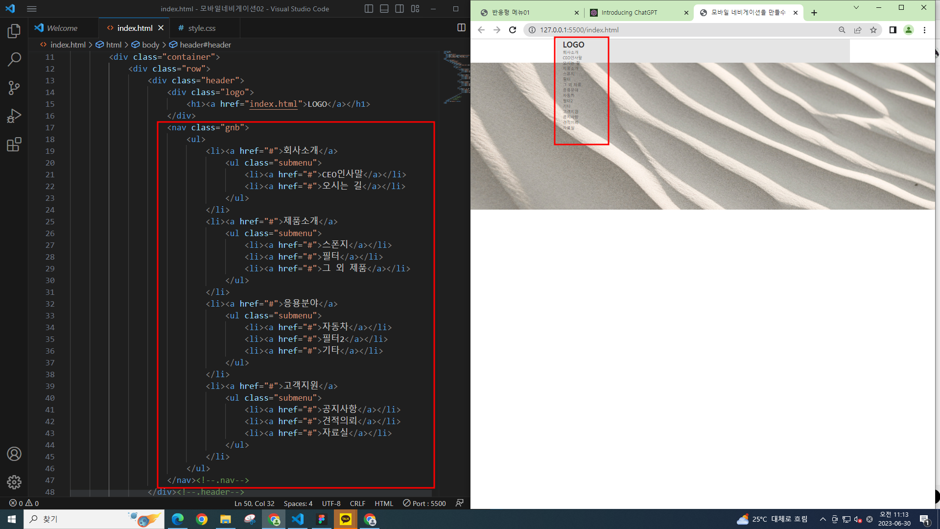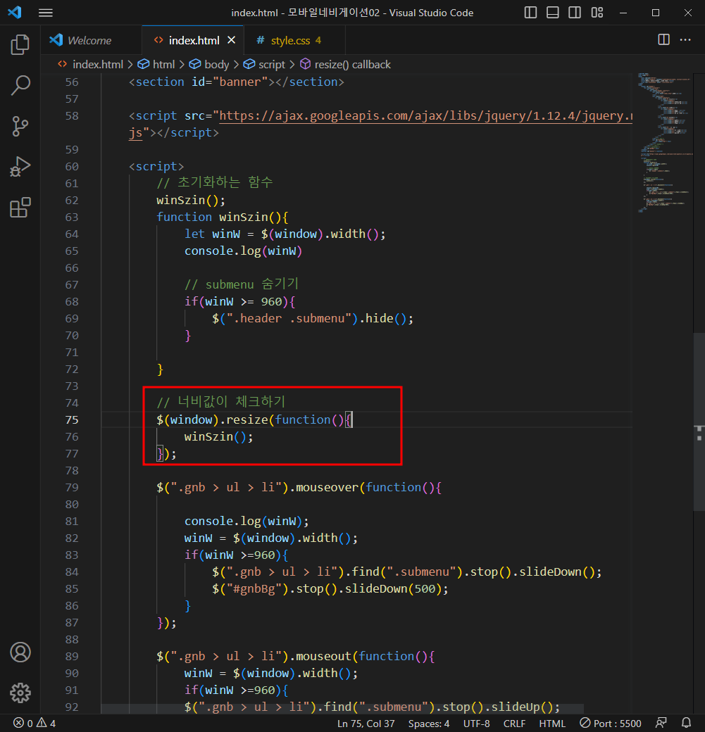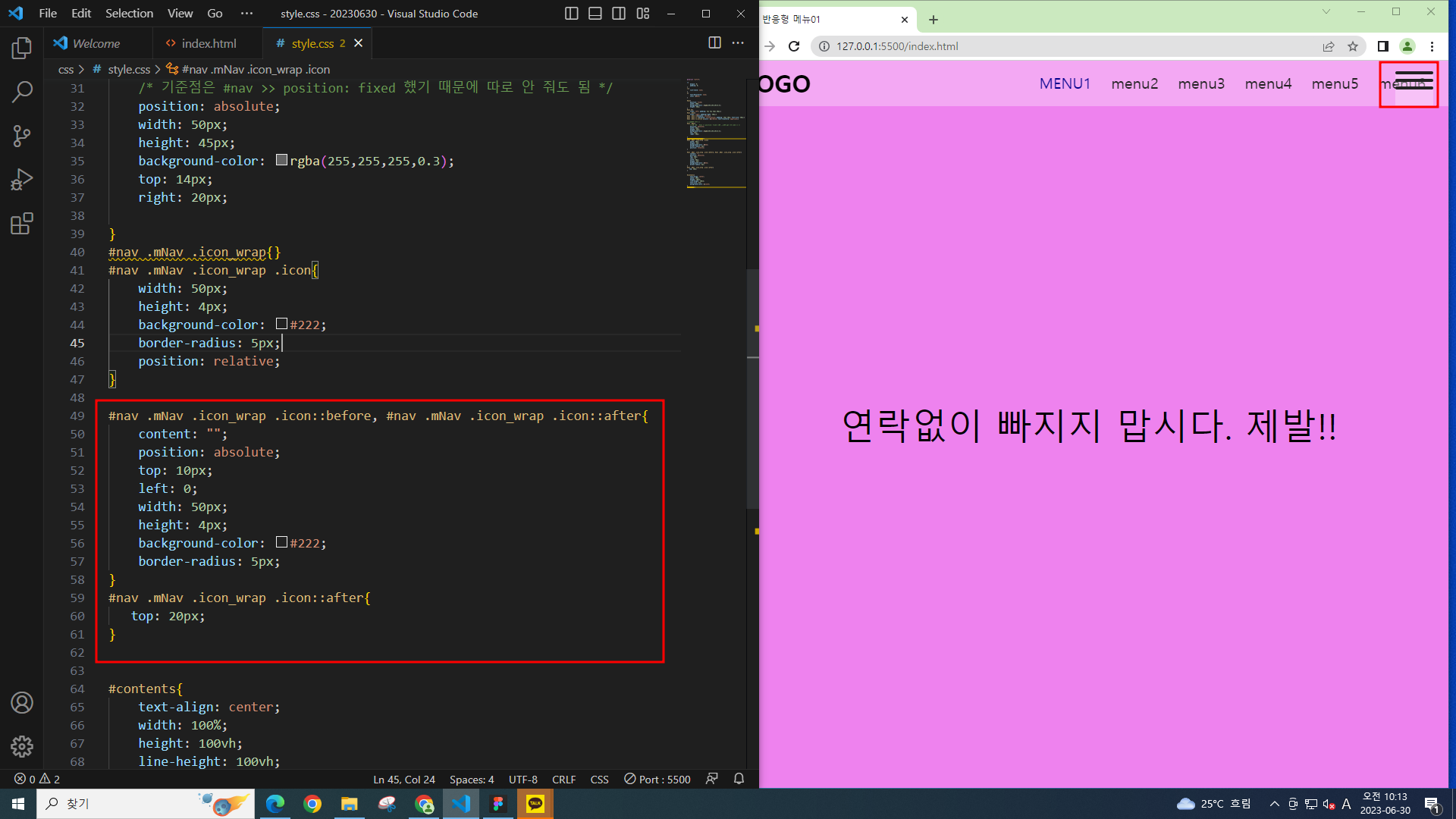 비주얼 스튜디오 코드 56_ 반응형 메뉴(모바일 네비게이션)