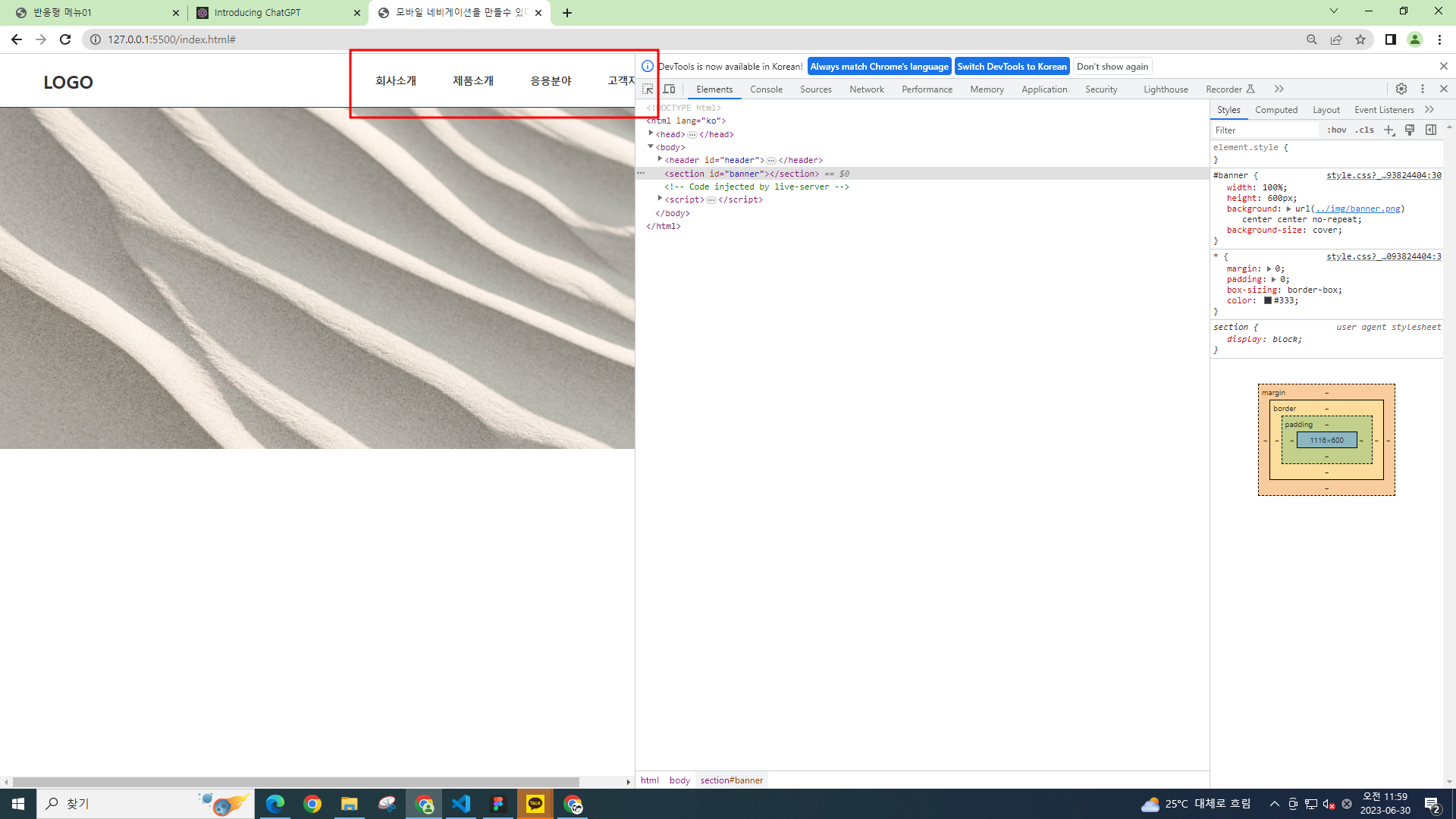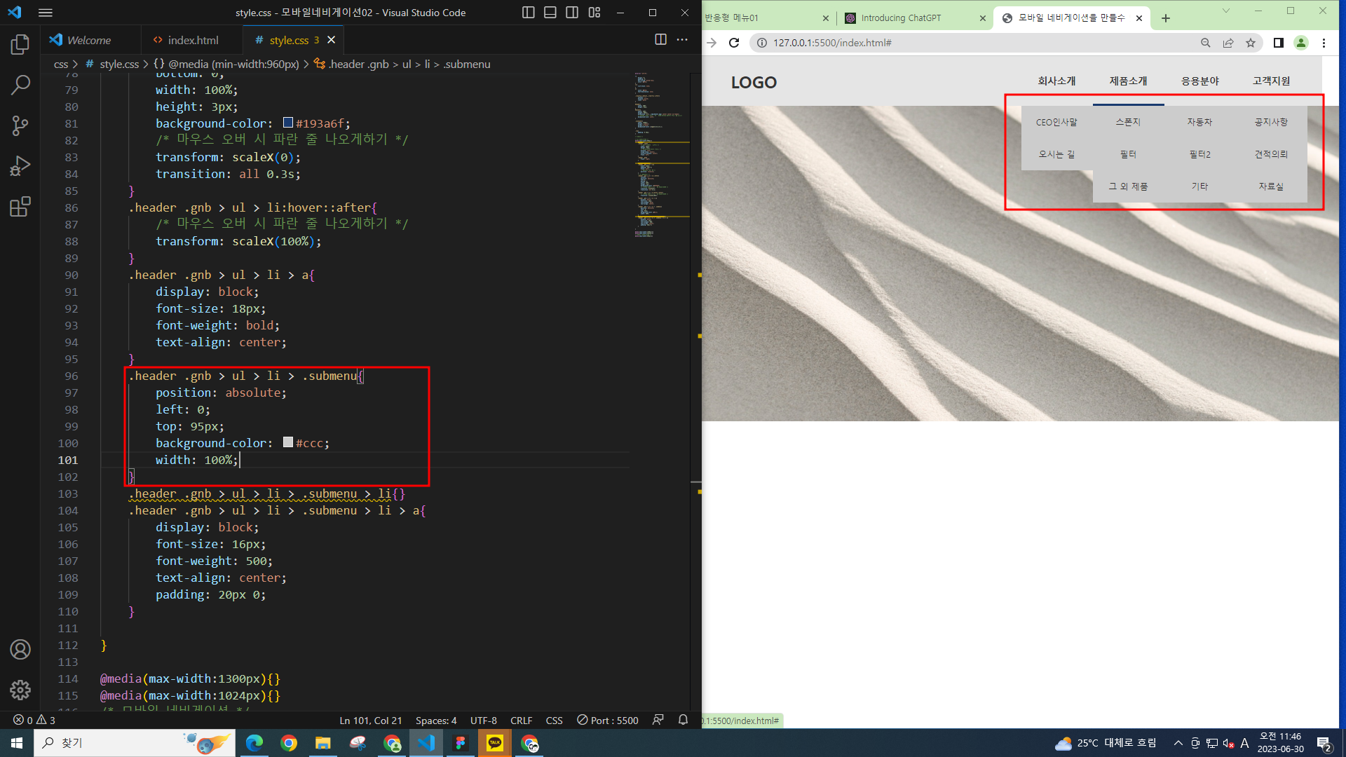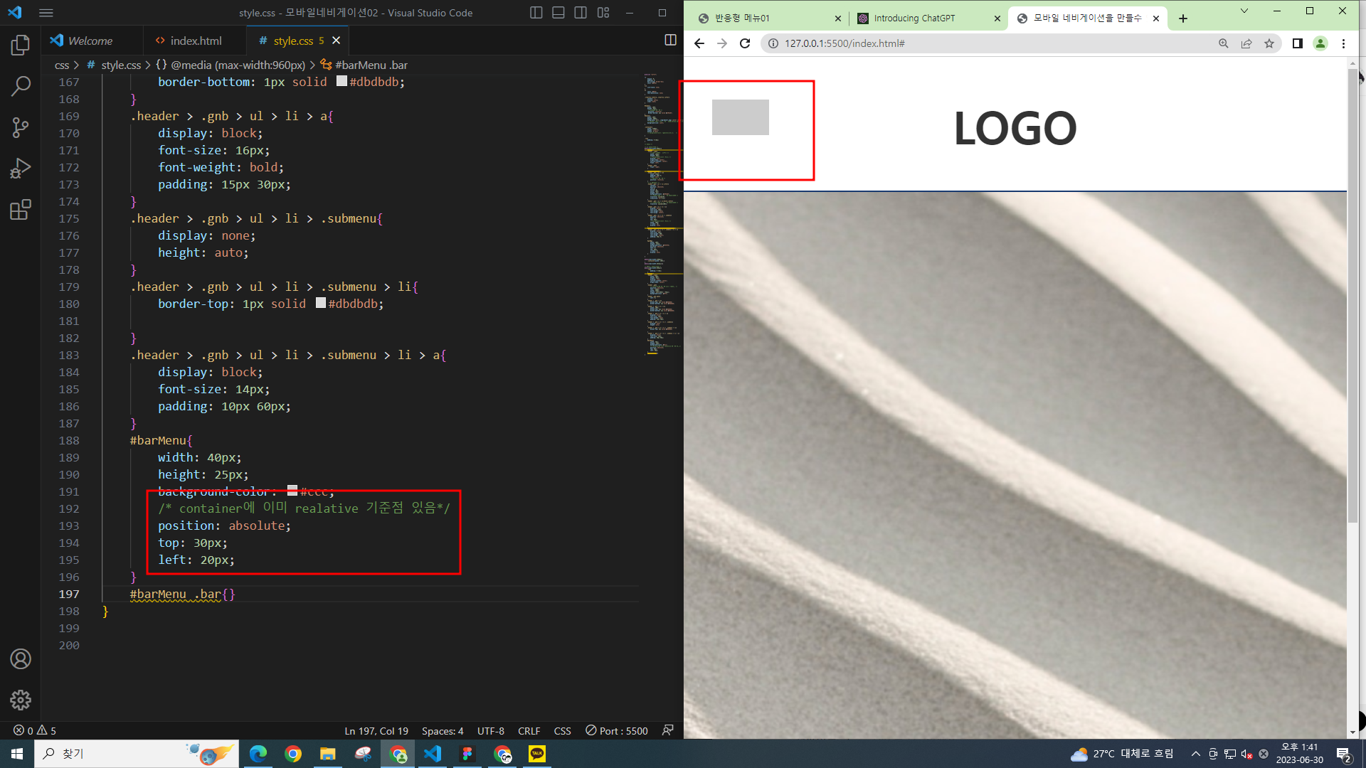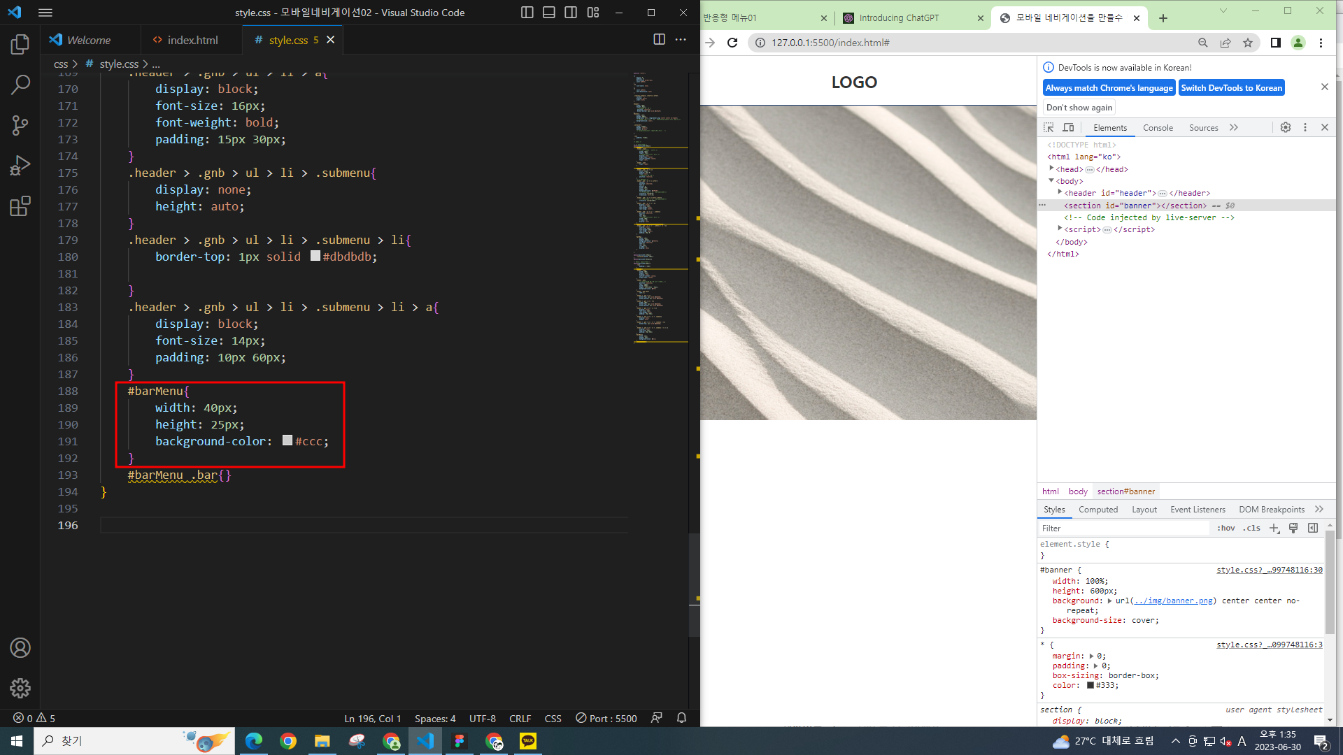 비주얼 스튜디오 코드 56_ 반응형 메뉴(모바일 네비게이션)
