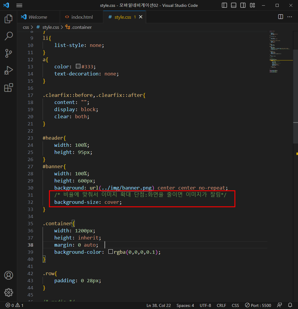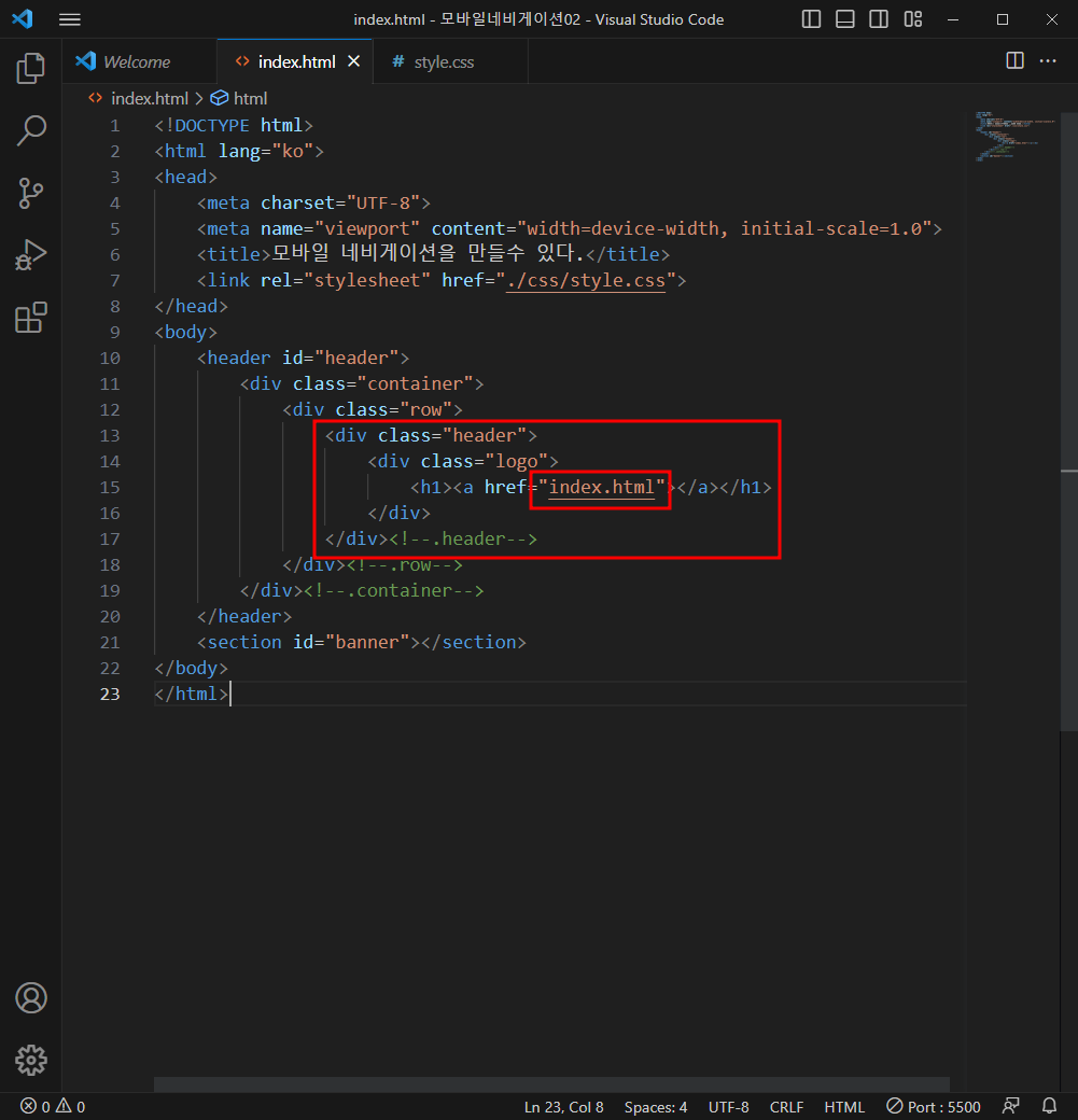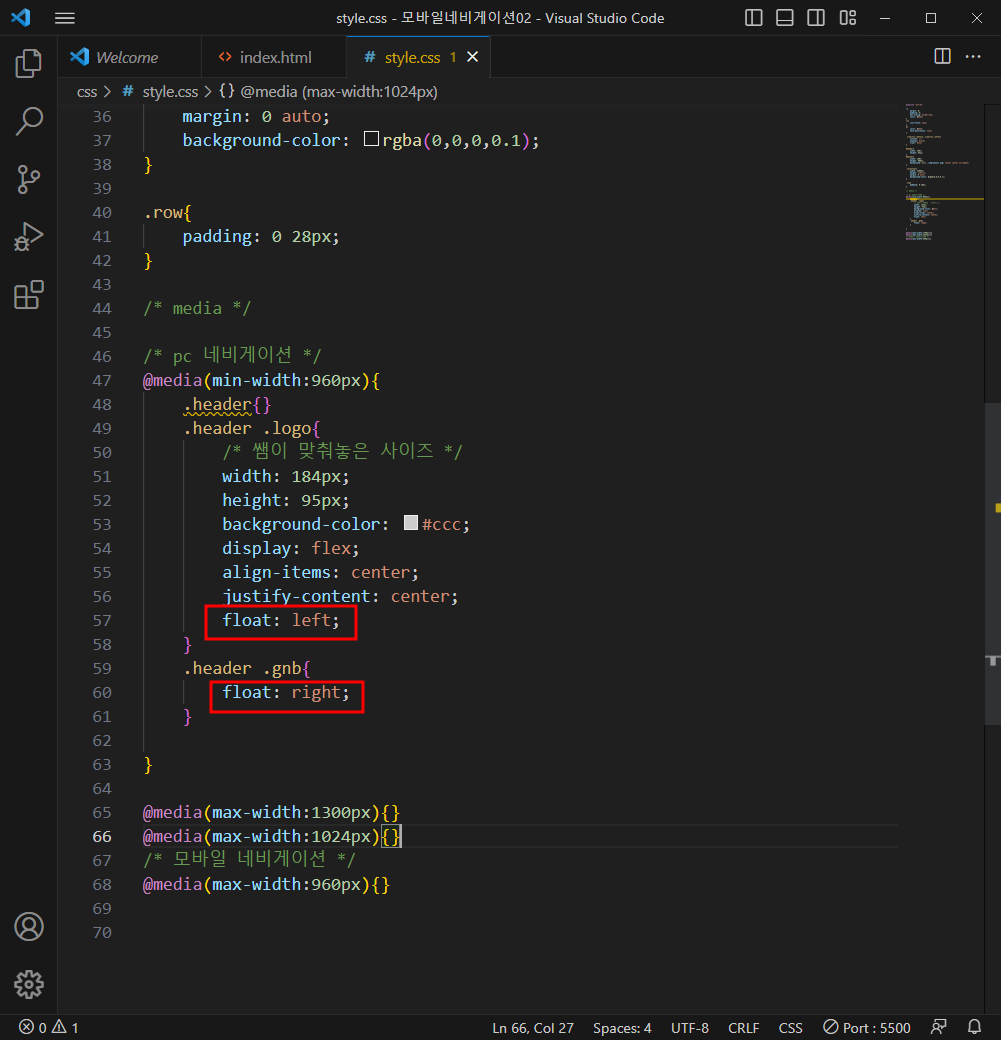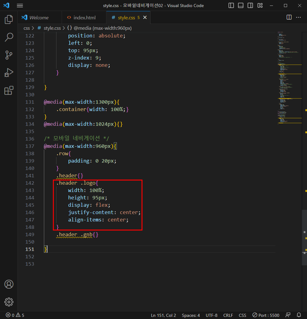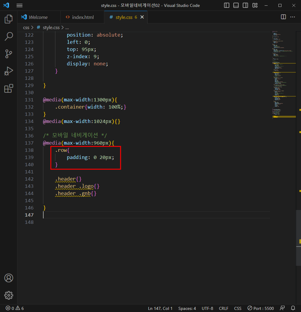media.css 만들기 (index.html에 링크 걸기 마지막 순서로 걸어준다.)