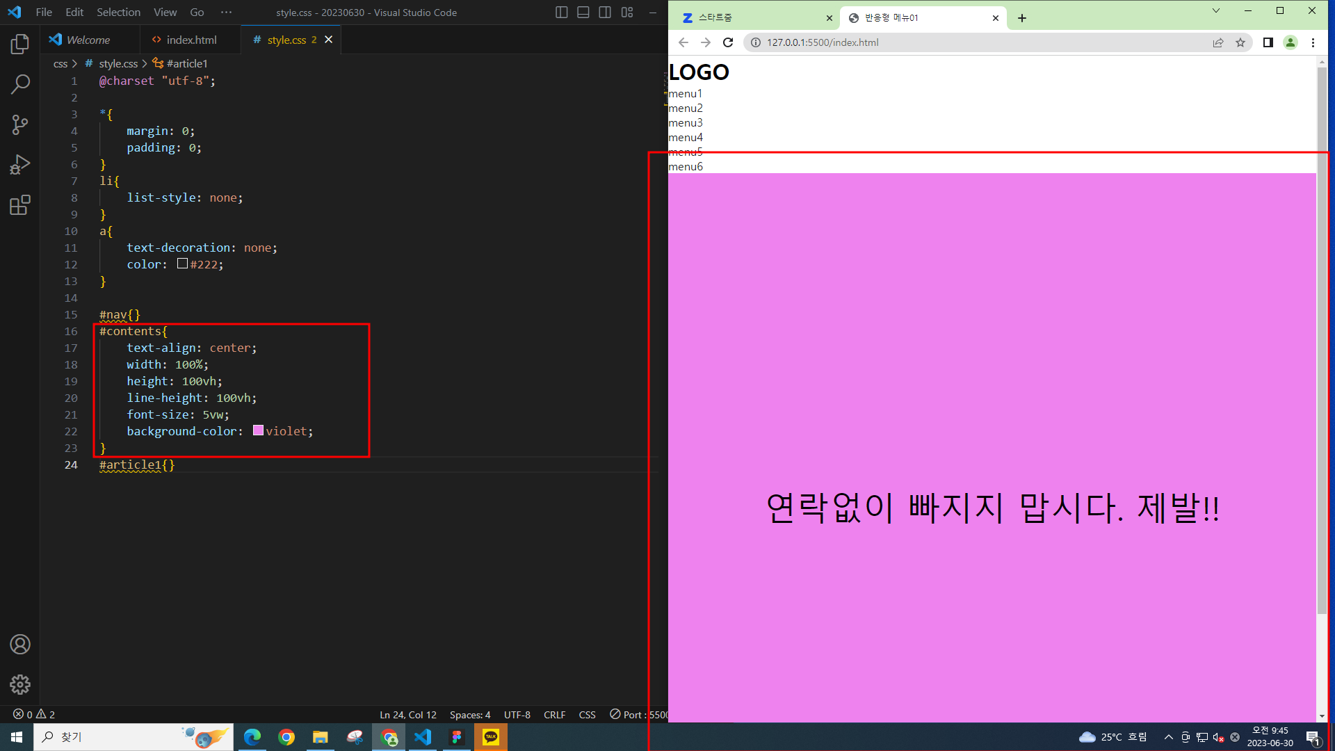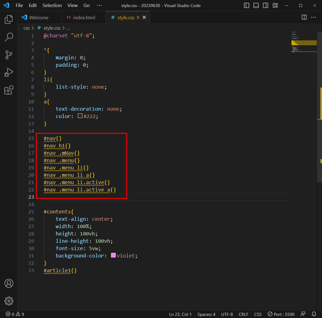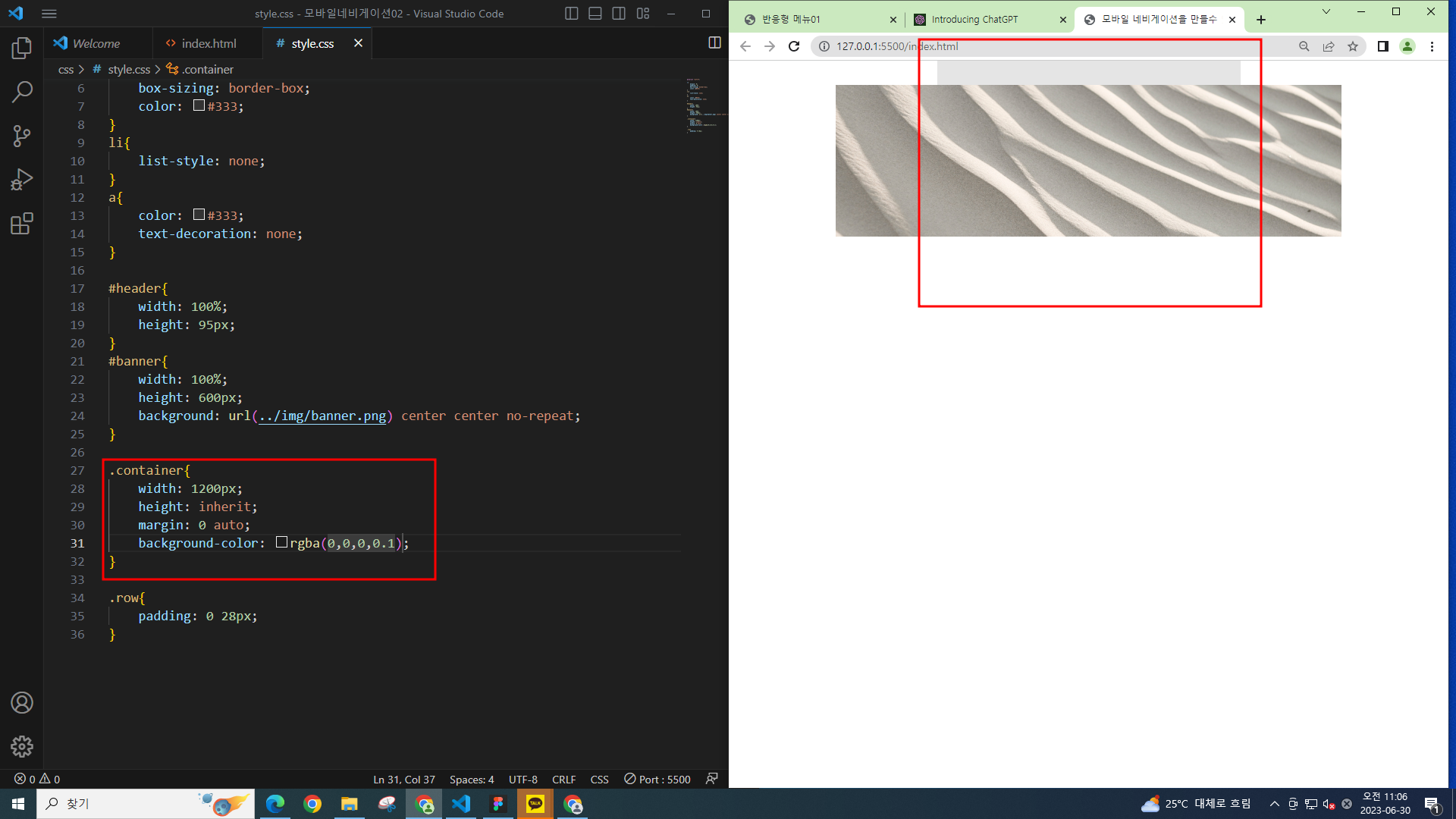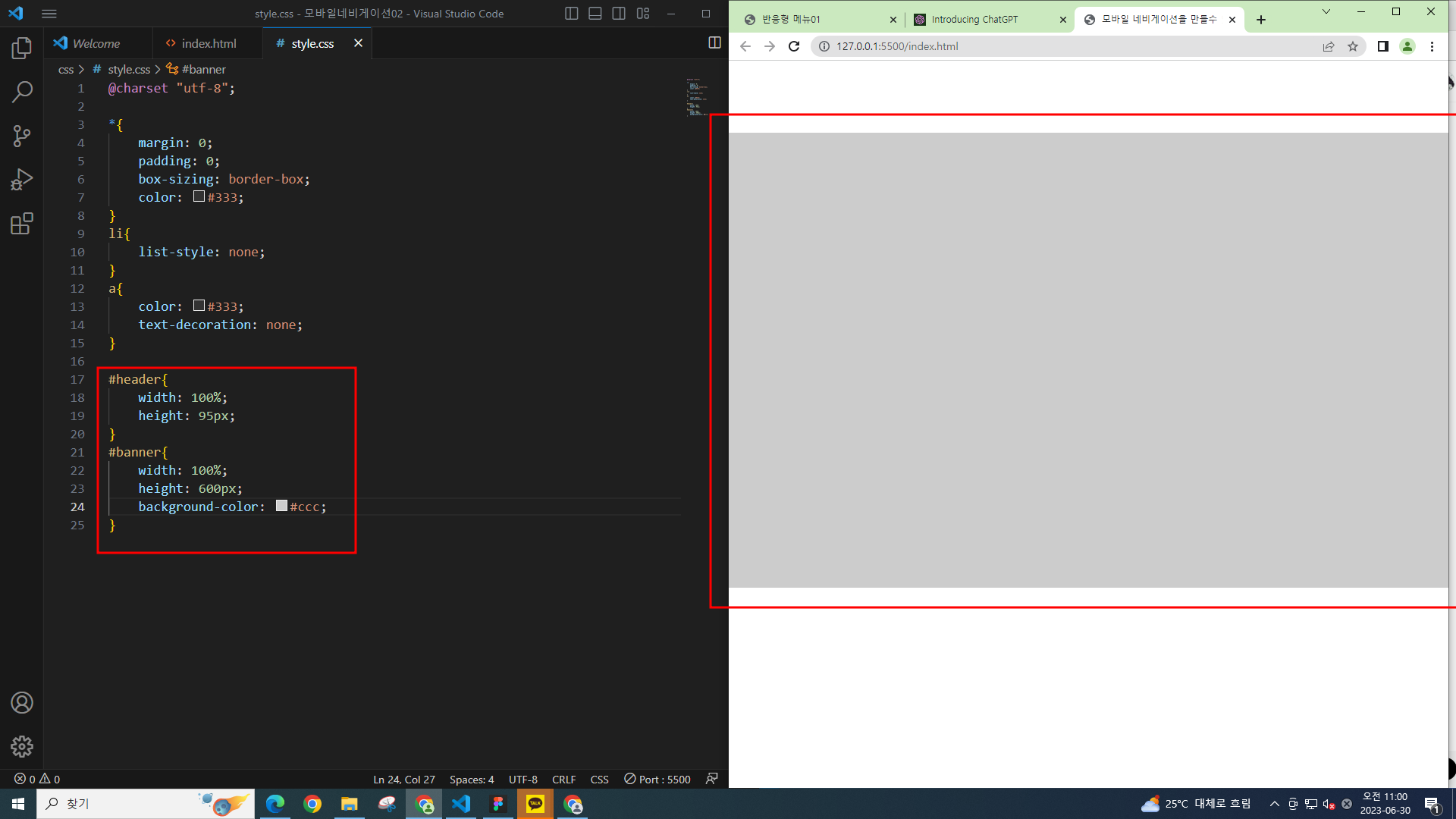 media.css 만들기 (index.html에 링크 걸기 마지막 순서로 걸어준다.)