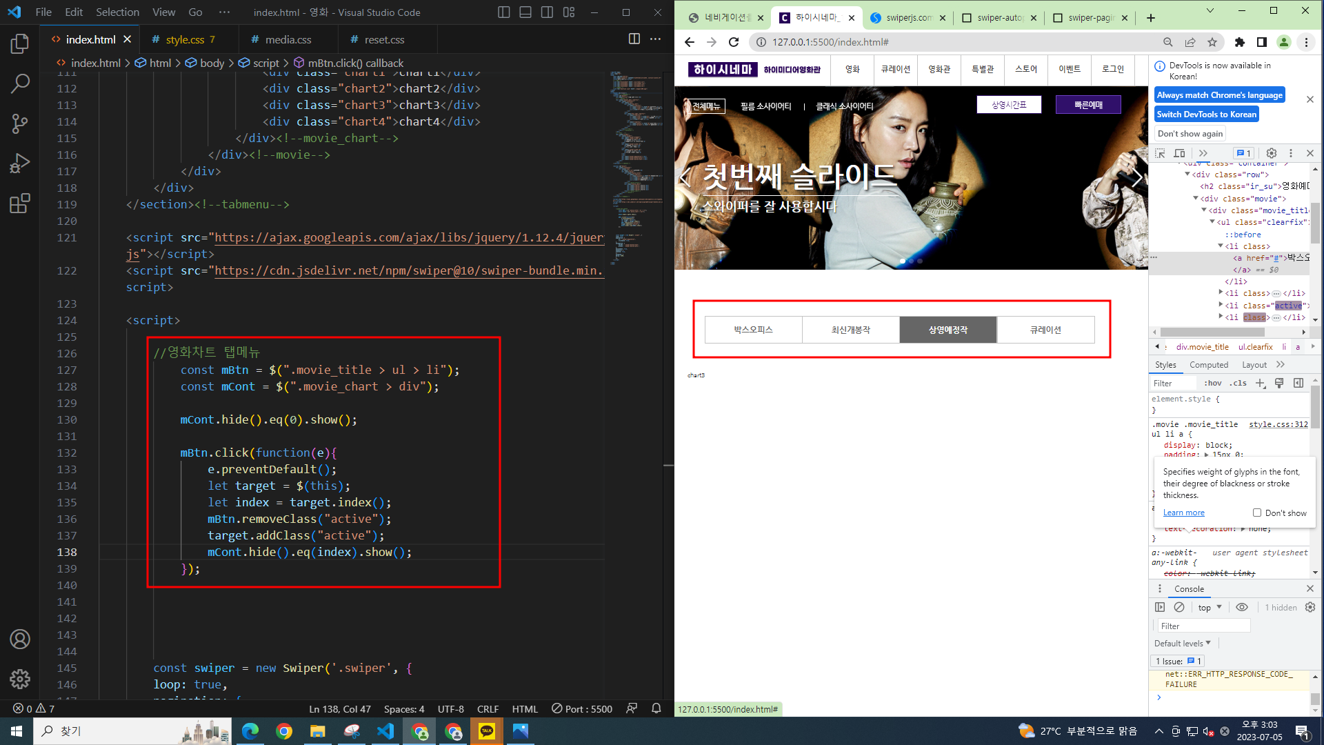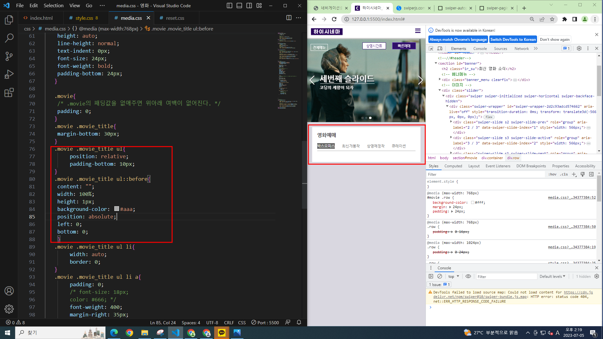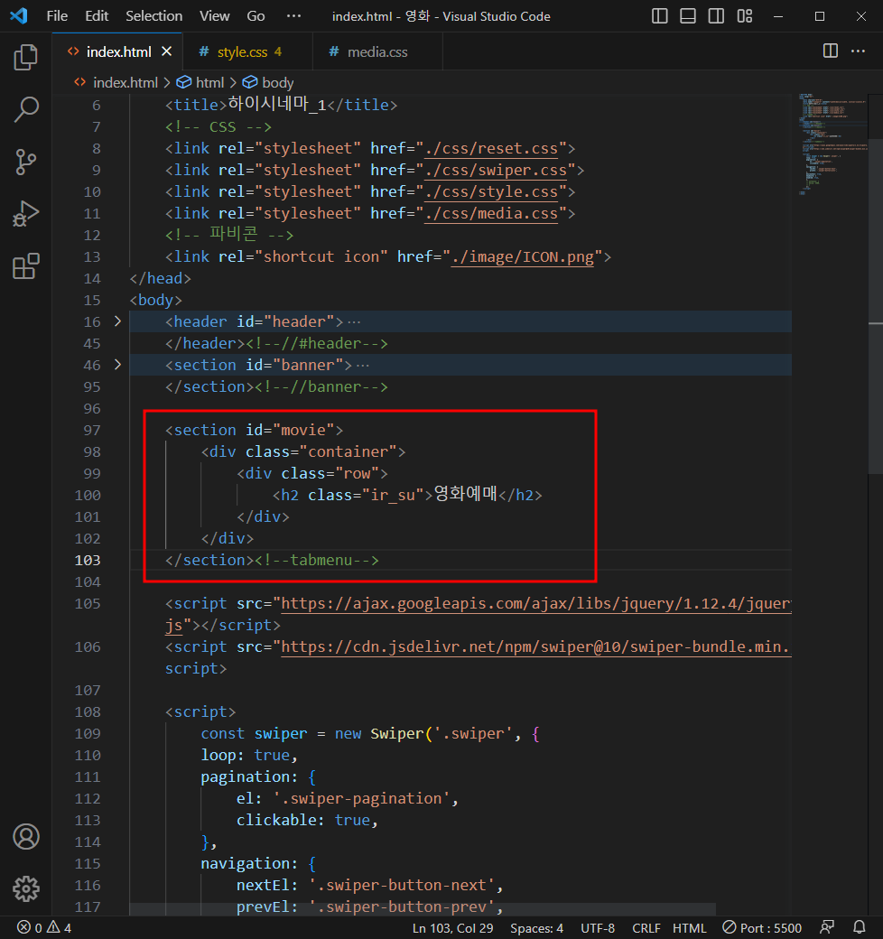 비주얼 스튜디오 코드 62_ 하이시네마 웹사이트 만들기 02 (0) | 2023.07.04 |