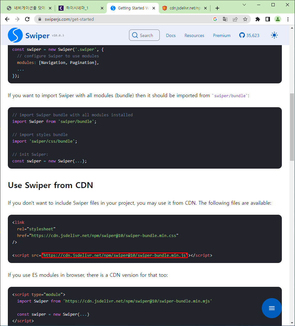 swiper.css파일 새로 만들어서 복사한 것 붙여넣기
