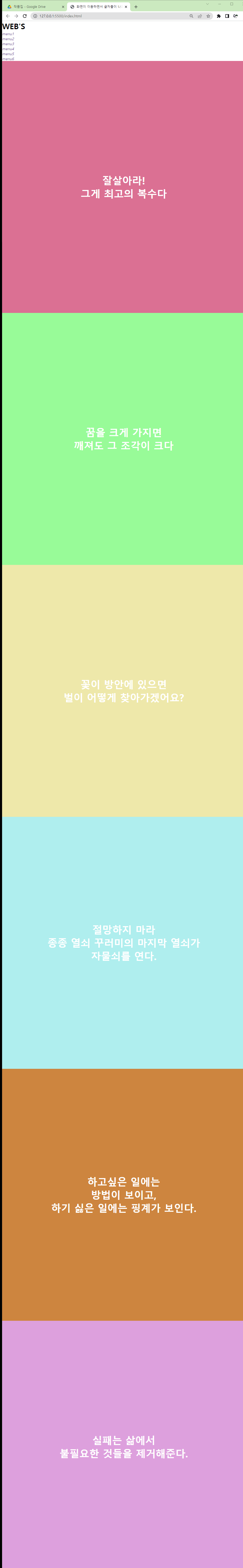 <div id="section5"><h2>하고싶은 일에는<br>방법이 보이고,<br>하기 싫은 일에는 핑계가 보인다.</h2></div>