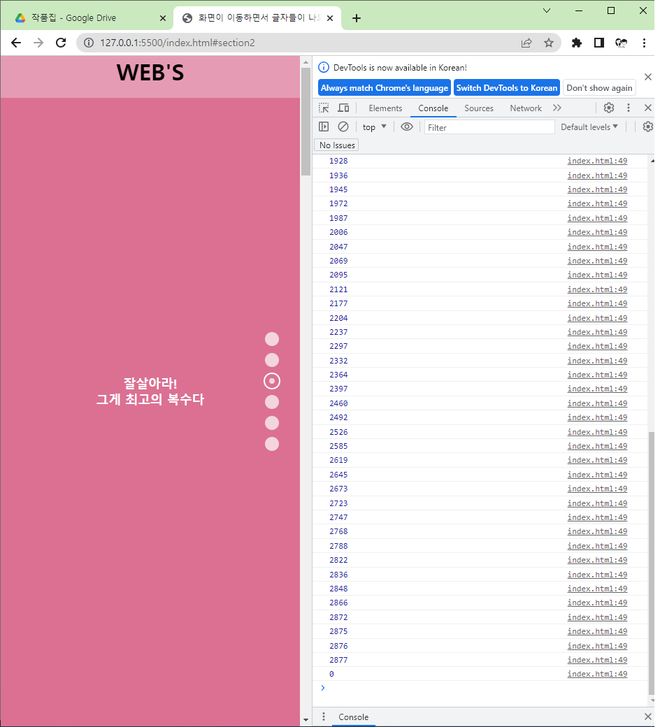 **parallax를 사용하지 않아도 링크를 걸면 해당 화면에 페이지로 이동하는 것을 볼 수 있다.