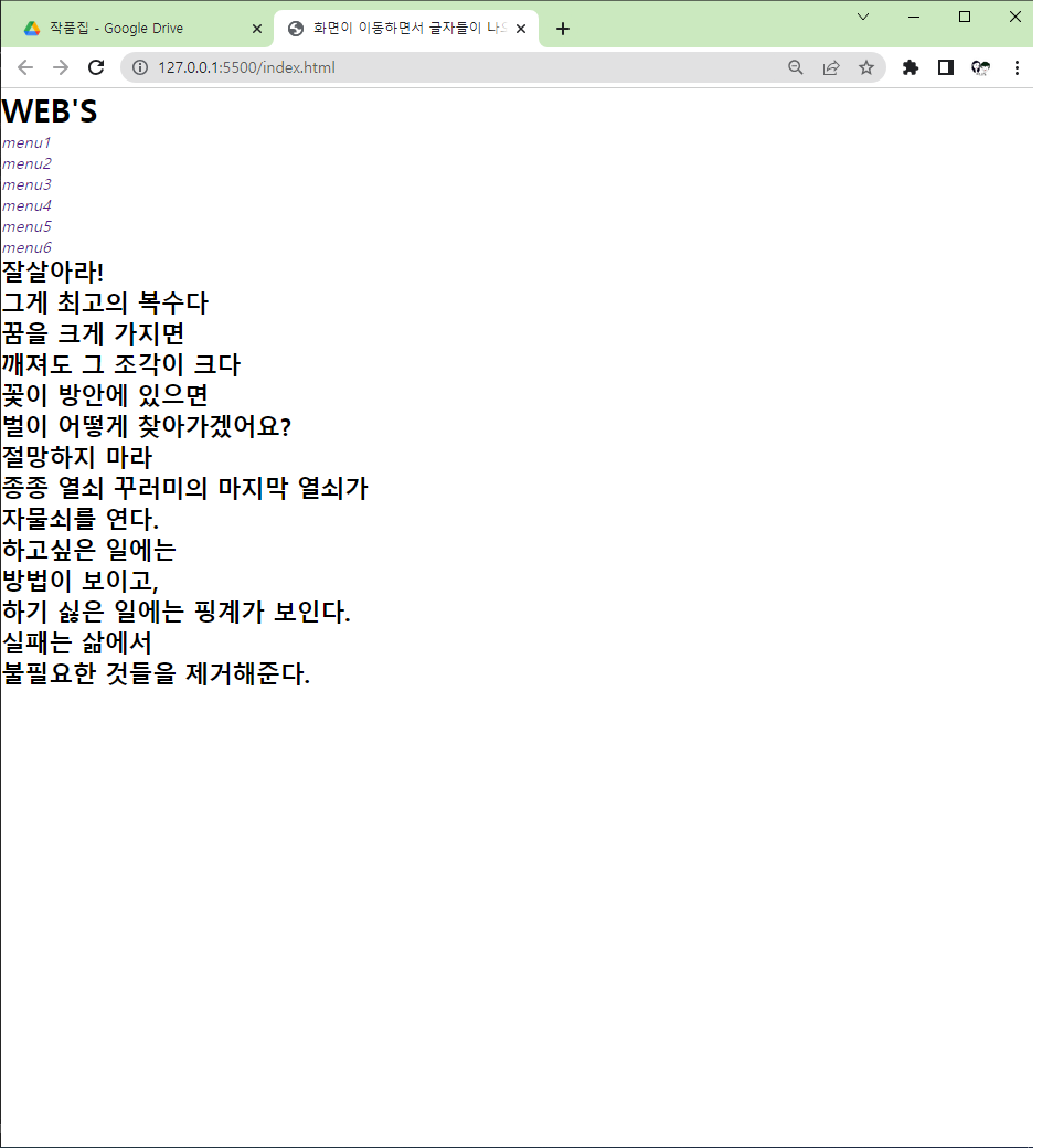 <title>화면이 이동하면서 글자들이 나오는 액션</title>