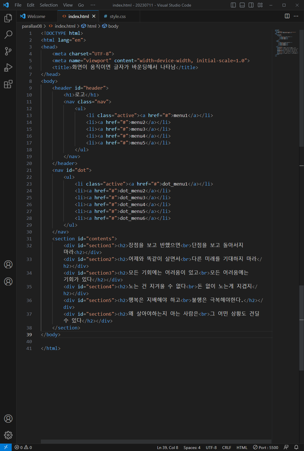 | 비주얼 스튜디오 코드 73_animation 화면이 움직이면 글자가 바운딩해서 나타남 (0) | 2023.07.11 |