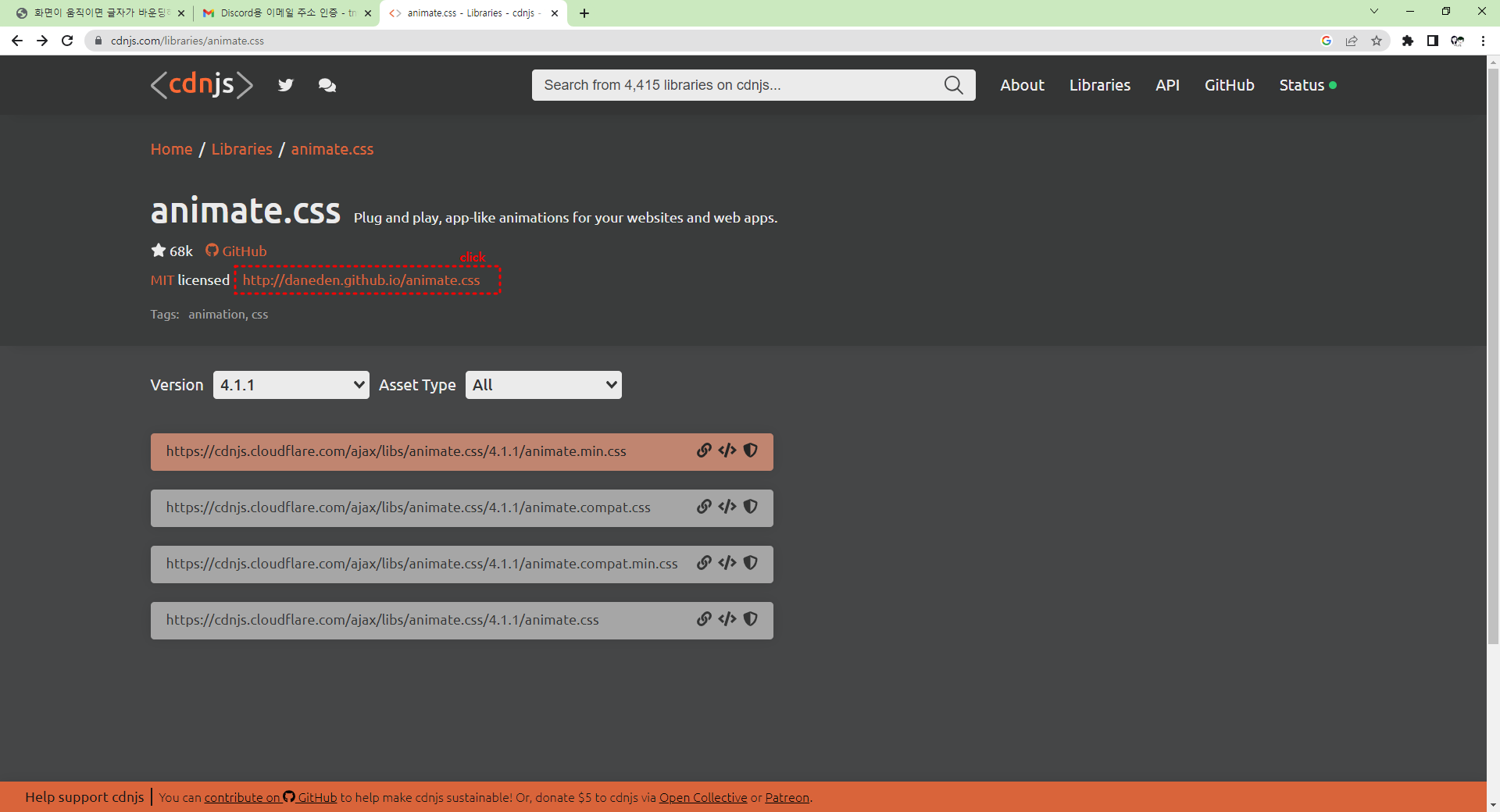 <link rel="stylesheet" href="https://cdnjs.cloudflare.com/ajax/libs/animate.css/4.1.1/animate.min.css">