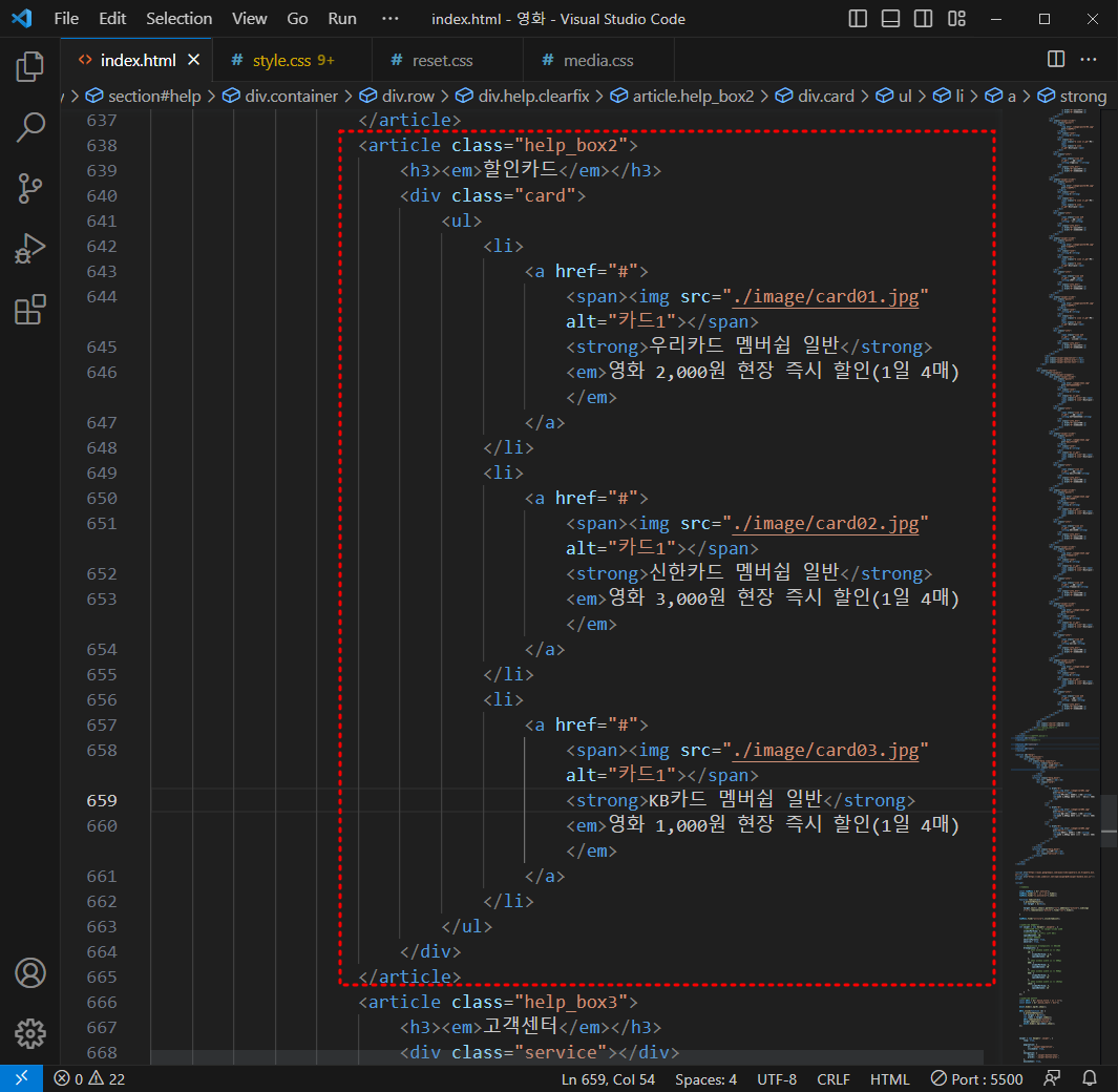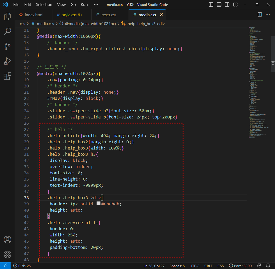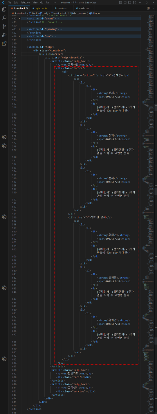 .help는 세개의 박스를 옆으로 띄워야하기 때문에 .help안에 clearfix를 넣는다.