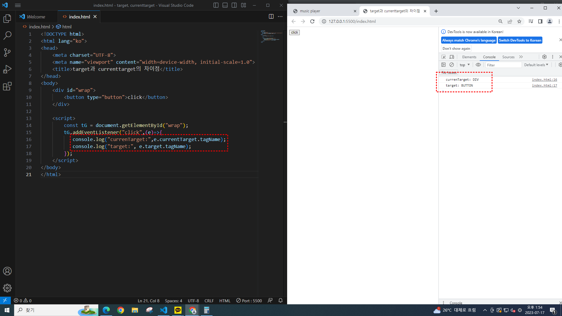 ● currentTarget: 오류를 줄이기 위해서 추가된 태그. 이벤트를 갖고있는 아이가 선택되면 이벤트가 실행