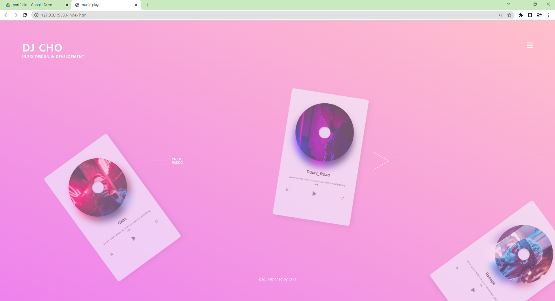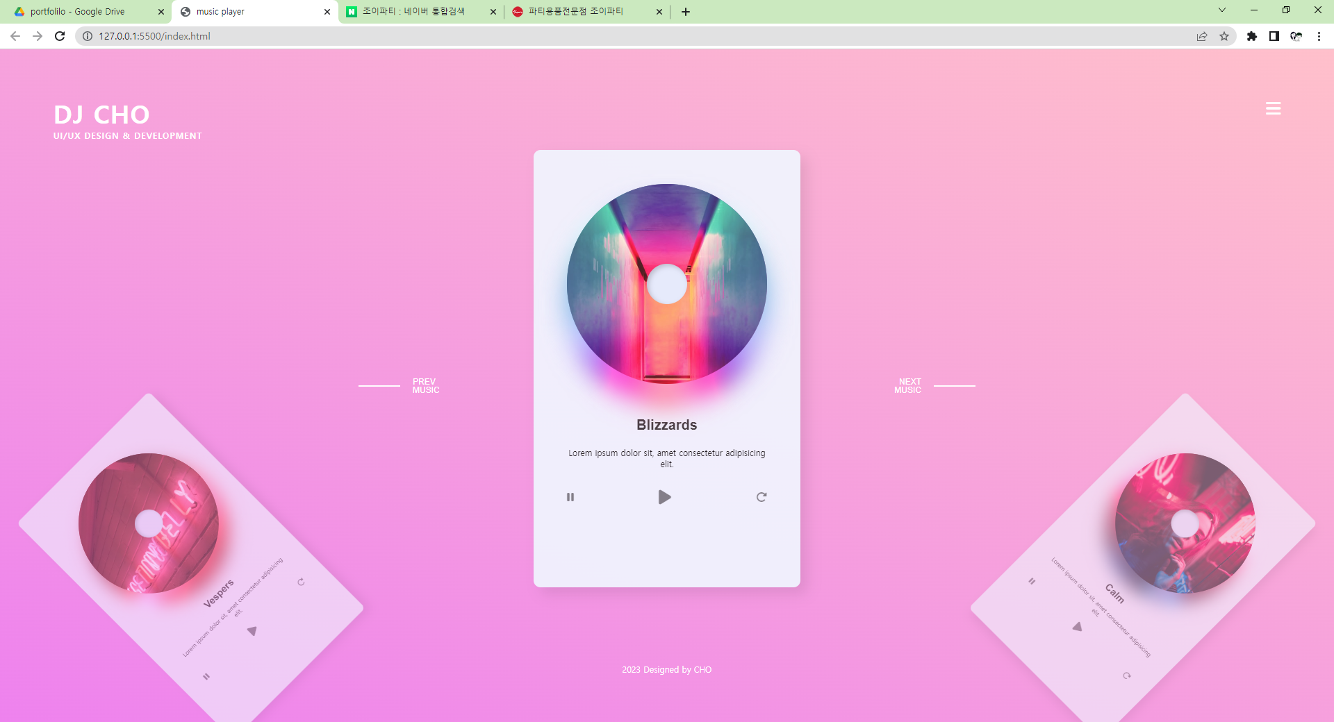 넥스트 버튼을 눌렀을 때 오른쪽에 있는 씨디가 2번, 왼쪽 씨디가 8번째이다.