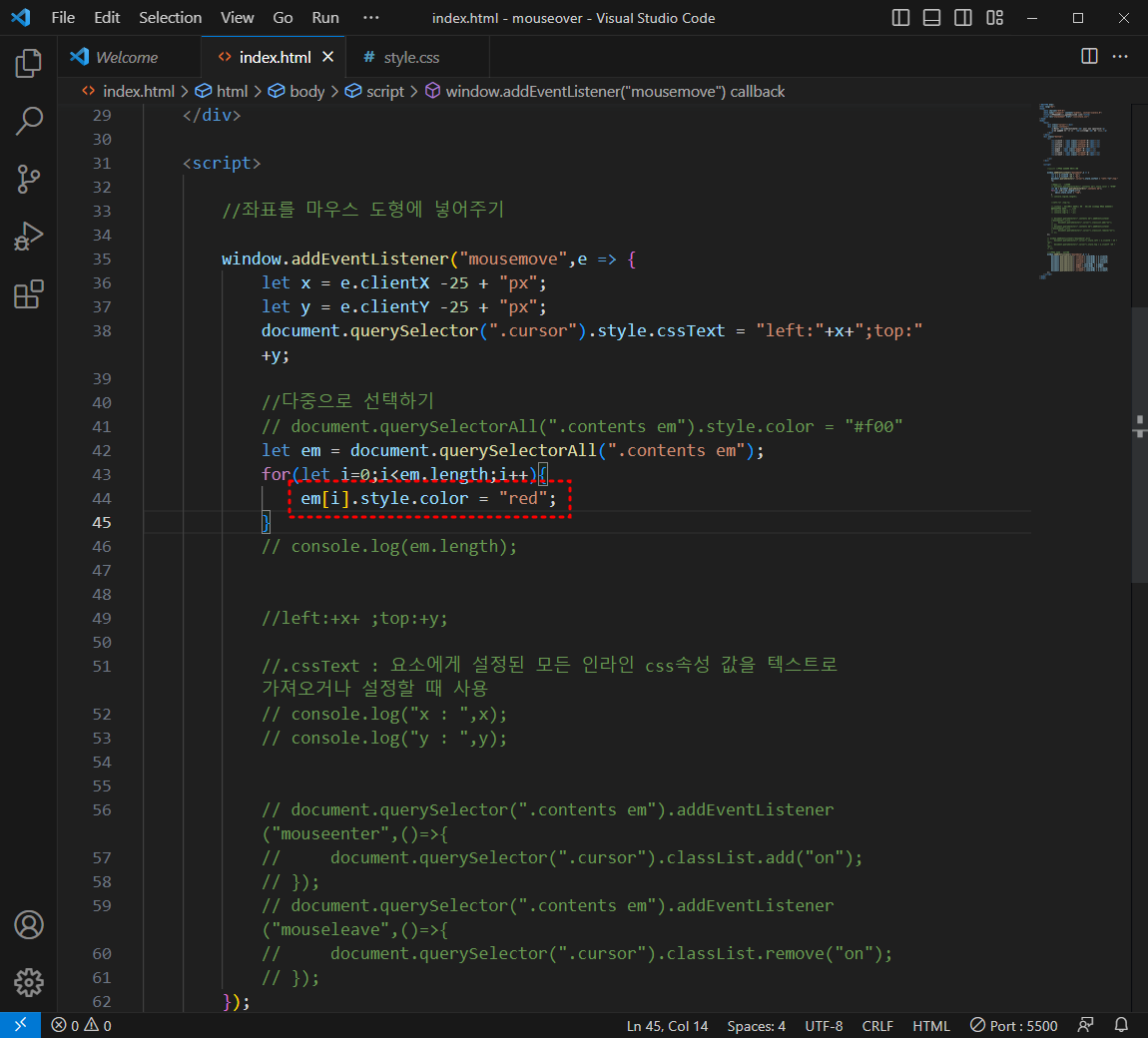 // document.querySelectorAll(".contents em").style.color = "#f00"