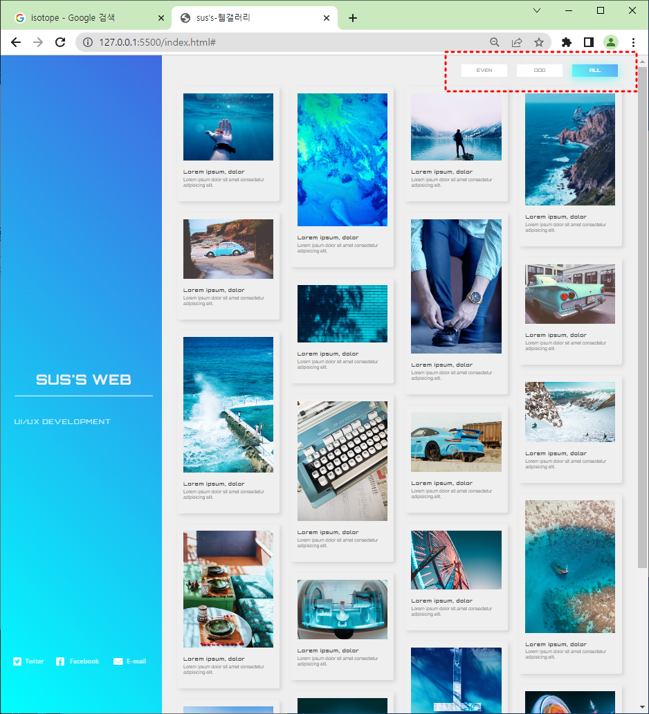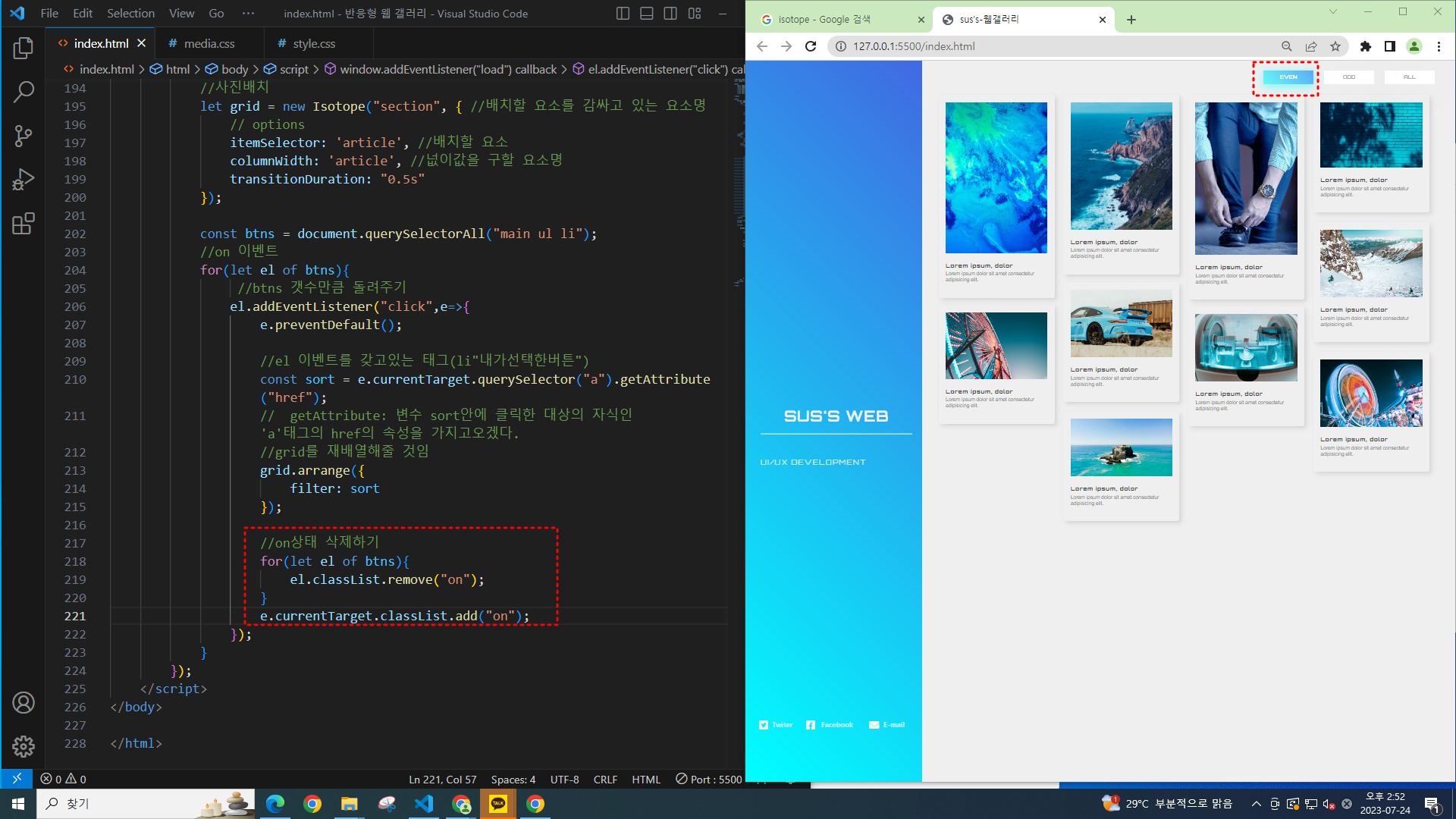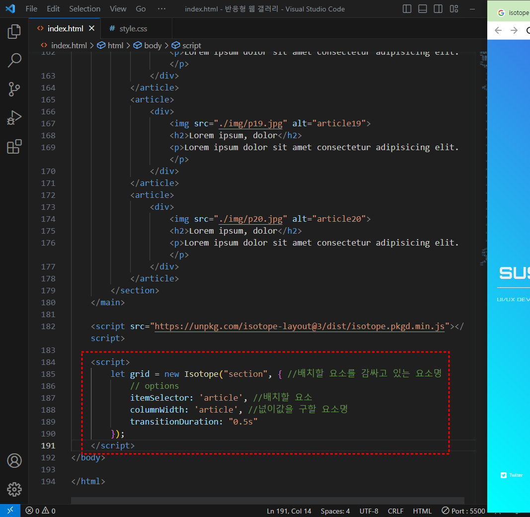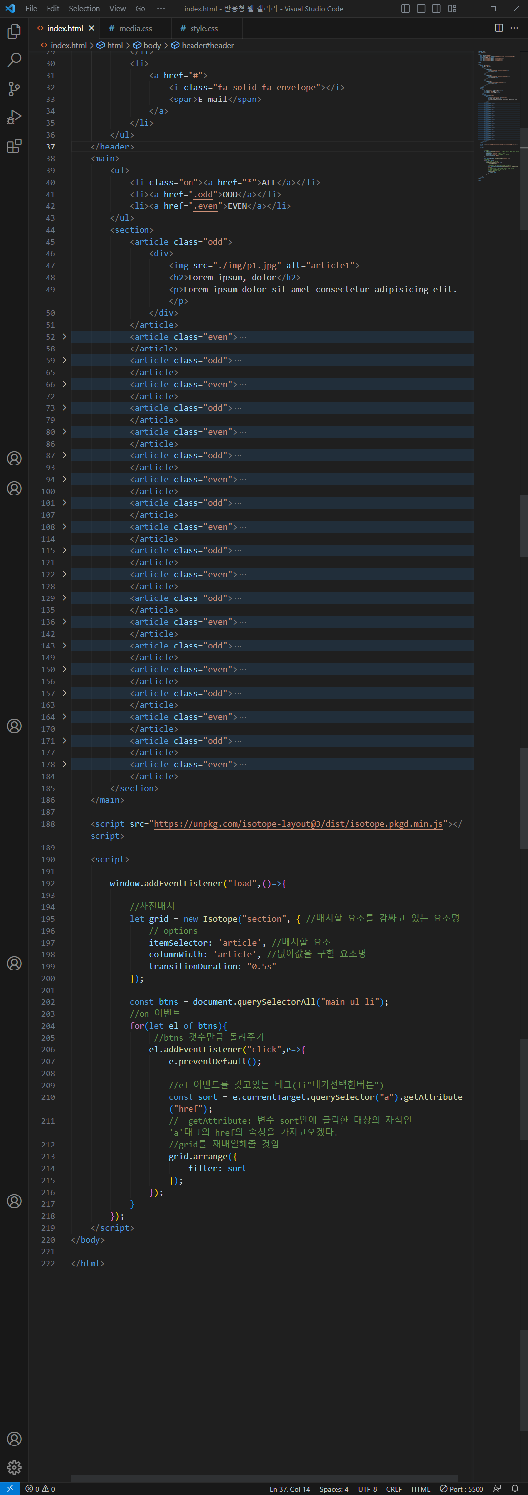 let grid = new Isotope("section", { //배치할 요소를 감싸고 있는 요소명