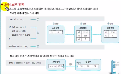 참조 타입 변수는 힙영역의 객체를 참조하지 않는다는 뜻으로 null 값을 가질 수 있다.