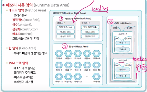 자바버추얼머신이 사용하는 운영체제에서 할당받은 메모리 영역을 구분해서 사용한다.