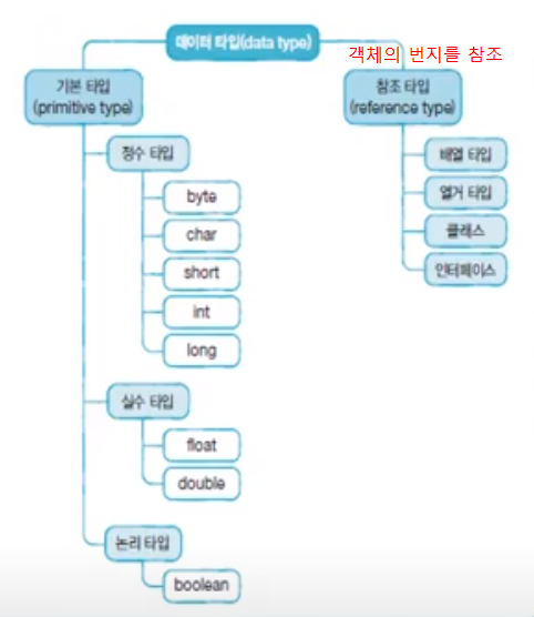 참조타입으로 선언된 변수 : 메모르의 번지를 변수 안에 저장