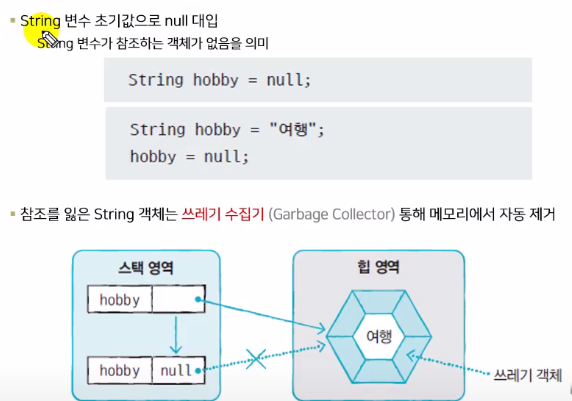 이때 null은 String변수가 참조하는 String 객체가 없다는 뜻이다.