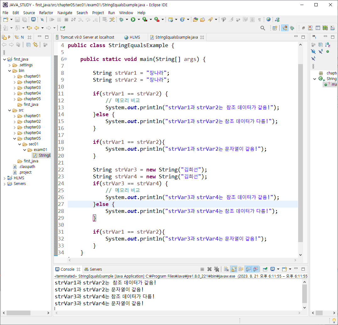 System.out.println("strVar1과 strVar2는 참조 데이터가 같음!");