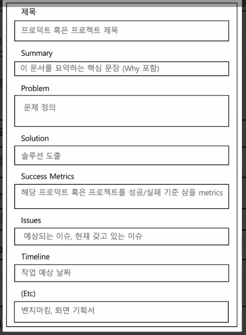 >조직마다 PRD를 사용하는 곳도 있고 1페이지로 짧고 빠르게 정리해서 사용하는 곳도 있다.