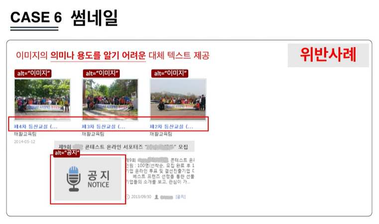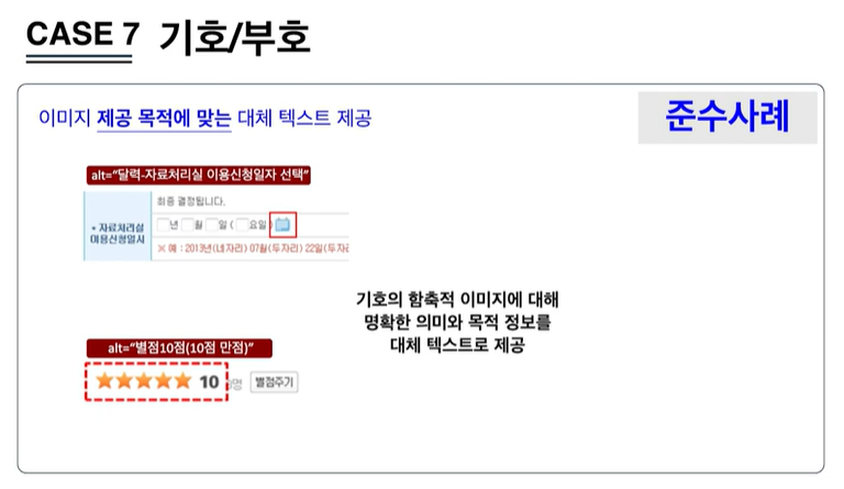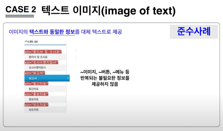 1. 이미지 등 텍스트 아닌 콘텐츠를 이용할 경우 그 의미나 용도를 동등하게 인식할 수 있도록 적절한 대체 텍스트를 제공해야 하며,