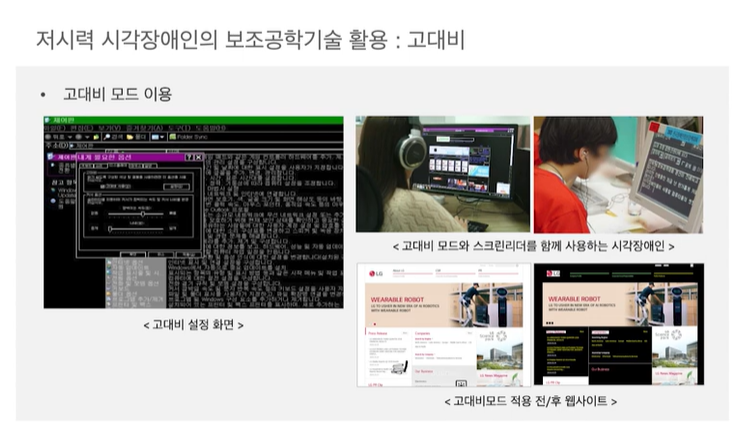 보조기술을 사용하여 해당 콘텐츠를 음성을 통해 들을 수 있으므로 최소한의 접근권을 보장받을 수 있게 된다.