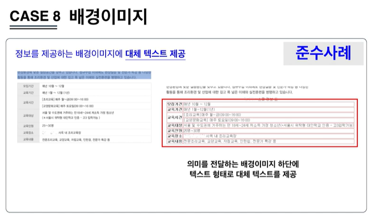 3. 콘텐츠에 적절한 대체 텍스트를 제공한 경우, 시각으로 제공받는 정보가 불충분하여 사용자가 콘텐츠의 핵심내용을 인지할 수