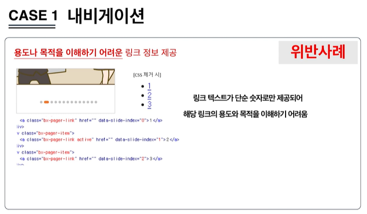 1. 링크는 주변 맥락을 통하여 용도나 목적지를 명화하게 이해할 수 있는 링크 텍스트를 제공해야 한다.