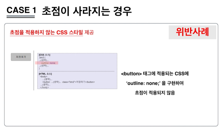 2. 초점을 받은 콘텐츠는 저시력 장애인과 지체 장애인들이 인지할 수 있도록 시각적으로 구별되어야 한다.
