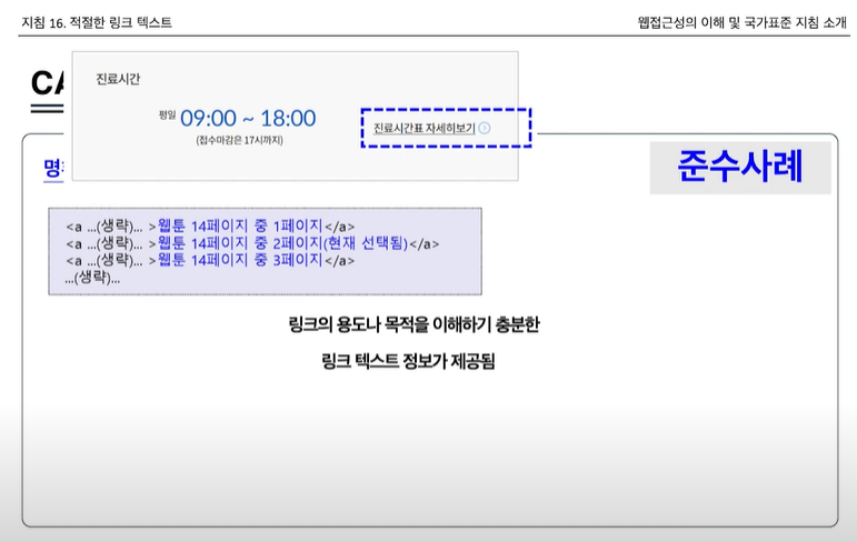링크 텍스트는 용도나 목적을 이해할 수 있도록 제공해야 한다.