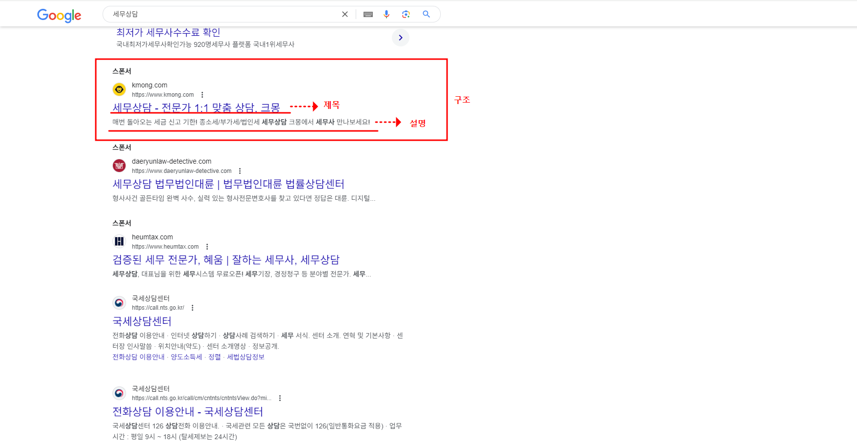 2. 온페이지 최적화 : 웹사이트의 제목, 부제목, 목차를 구성하는 작업