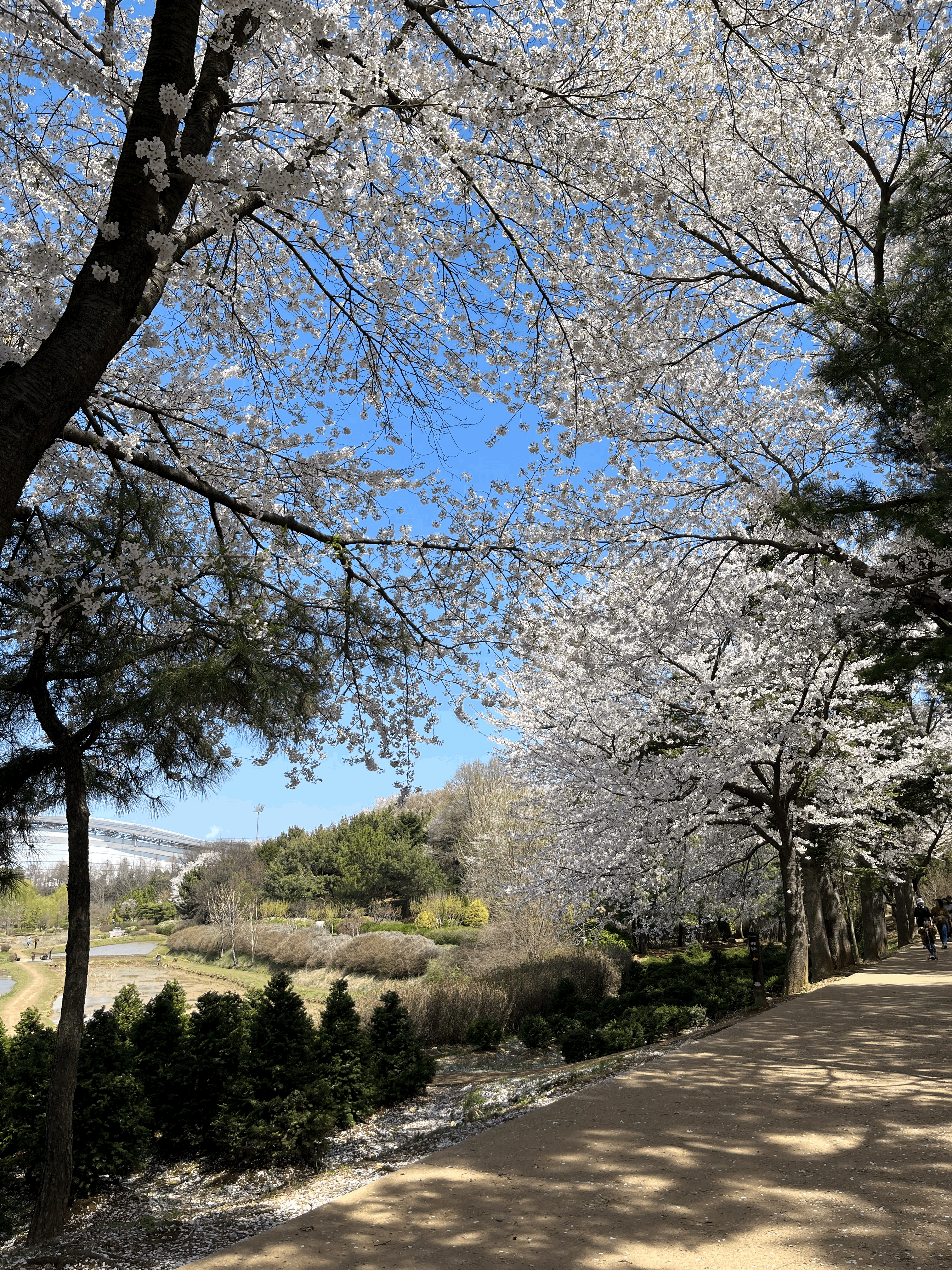 아시아드경기장 가는 길에 엄청 큰 벚꽃나무가 있어요