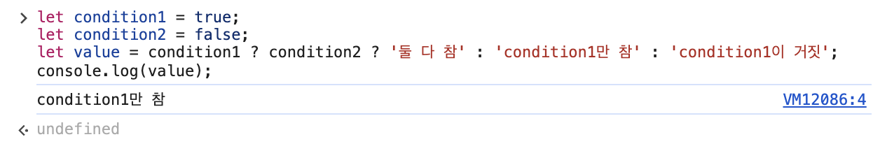 조건부 연산도 중첩해서 사용할 수 있다.