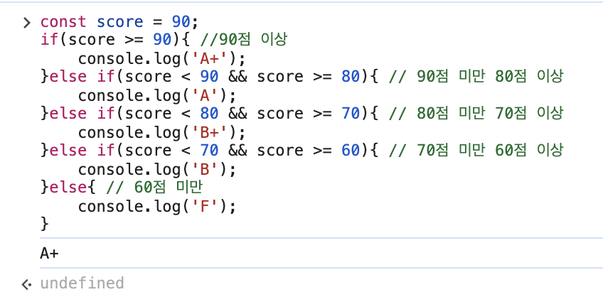 조건이 세가지 경우 이상일 떄 else if를 사용할 수 있다.
