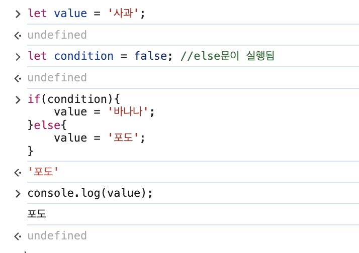 앞에서 else문을 사용해 조건이 true인 경우와 false인 경우, 두 가지를 분기 처리해보았다.