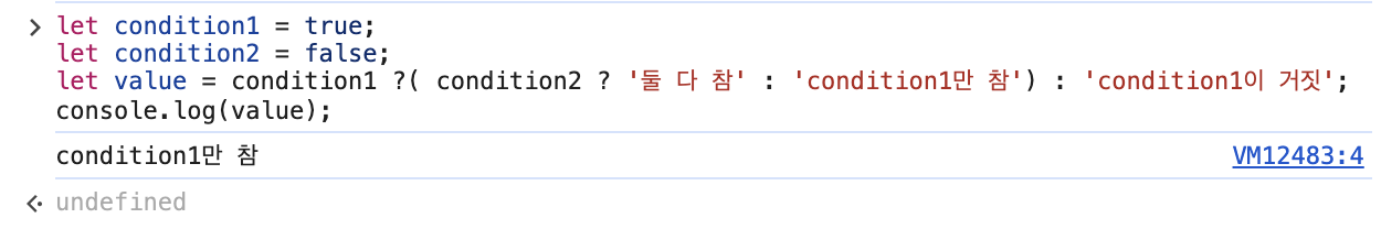 조건부 연산도 중첩해서 사용할 수 있다.