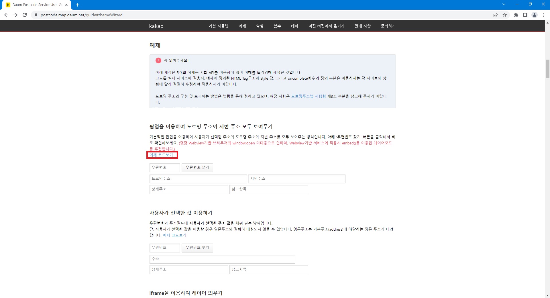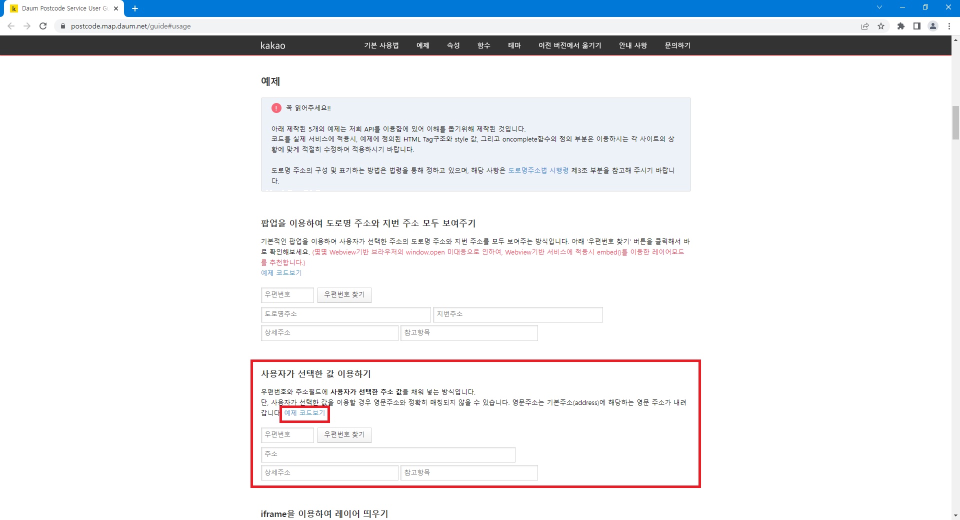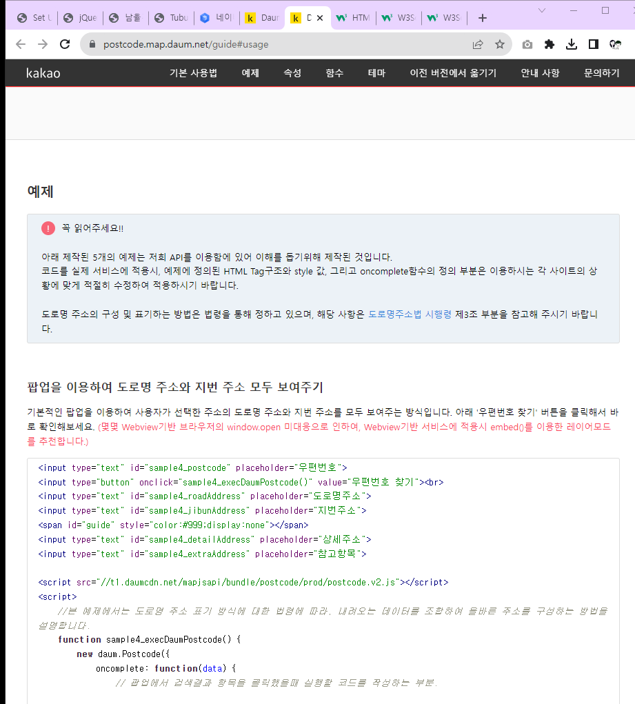 1) Daum Postcode Service User Guide_우편번호찾기_기능구현시_웹서버구동필요함