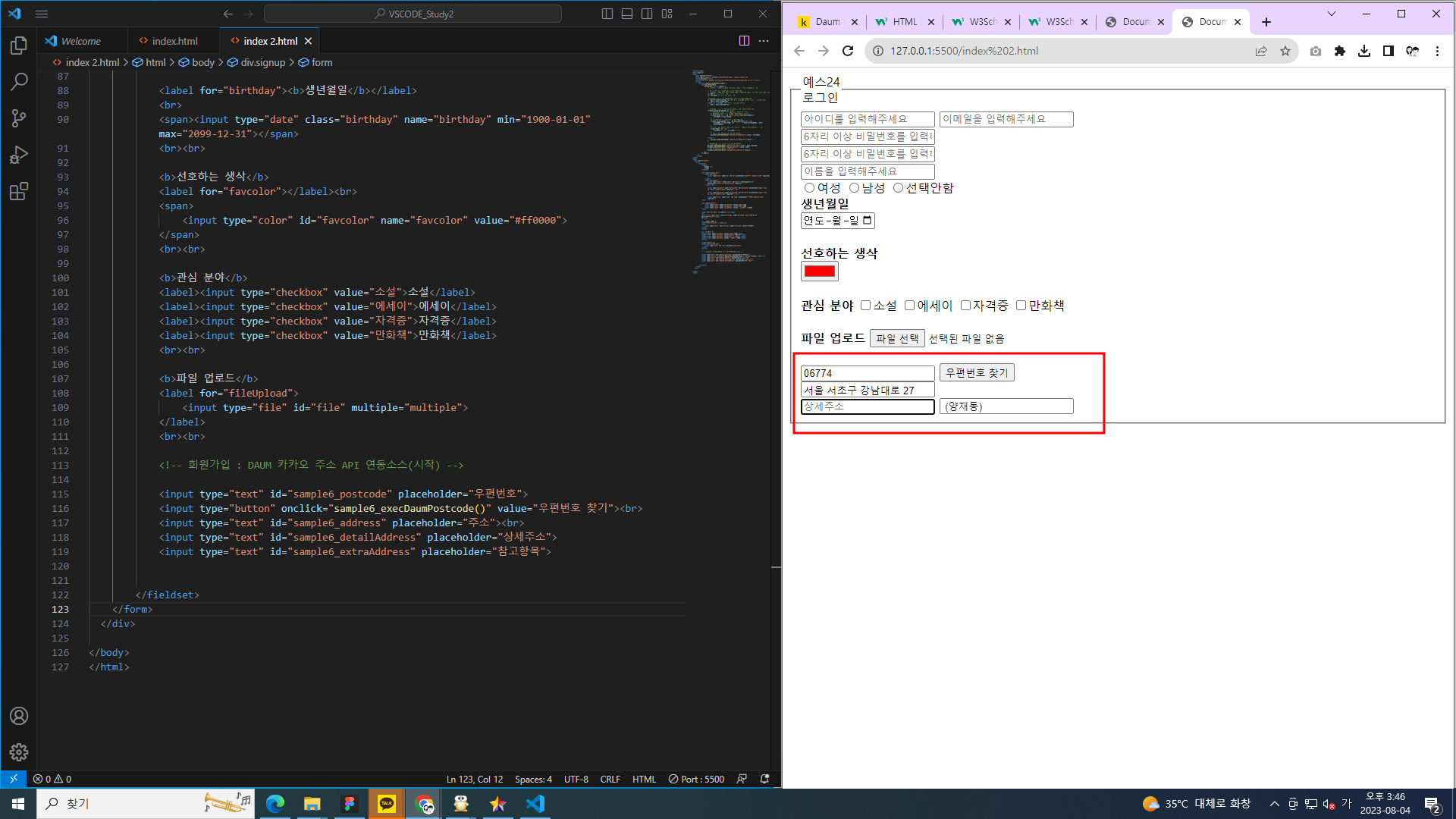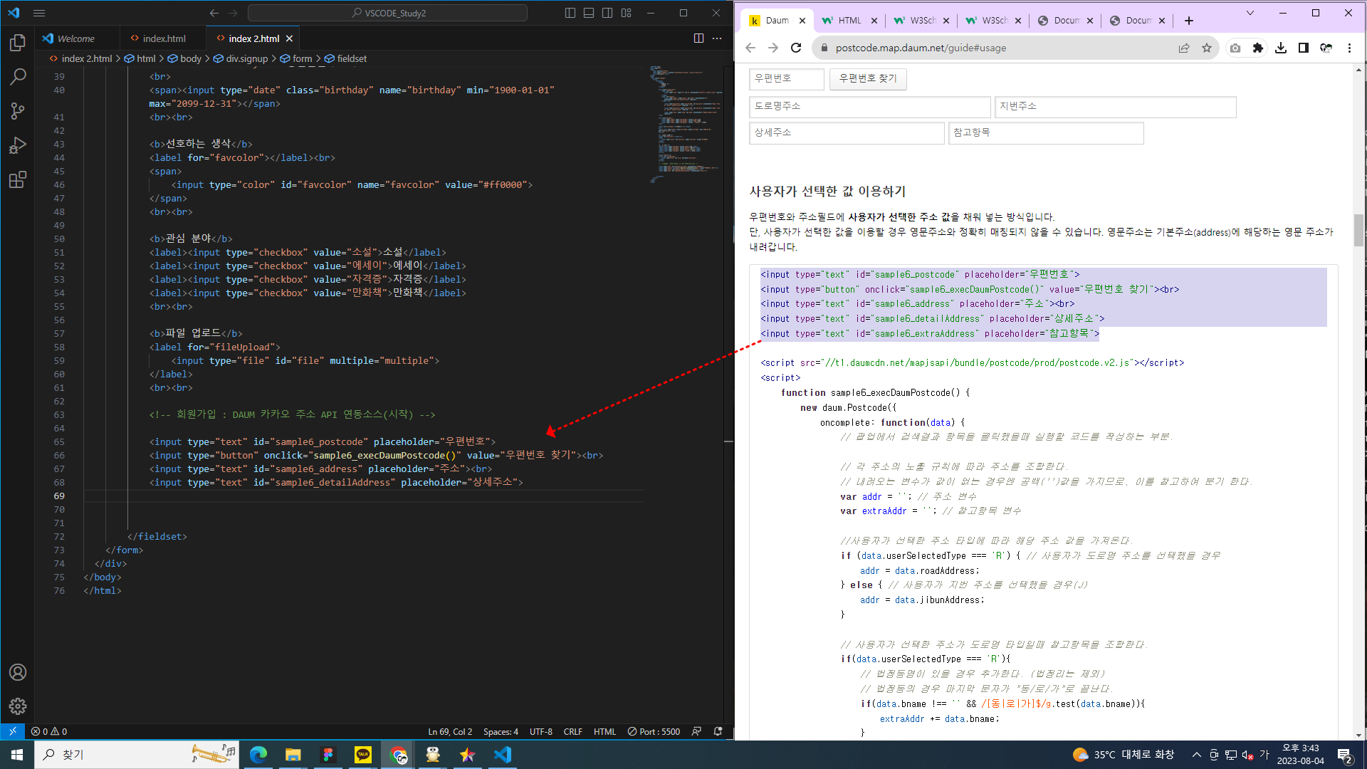 <input type="text" id="sample6_address" placeholder="주소" size="35"><br>